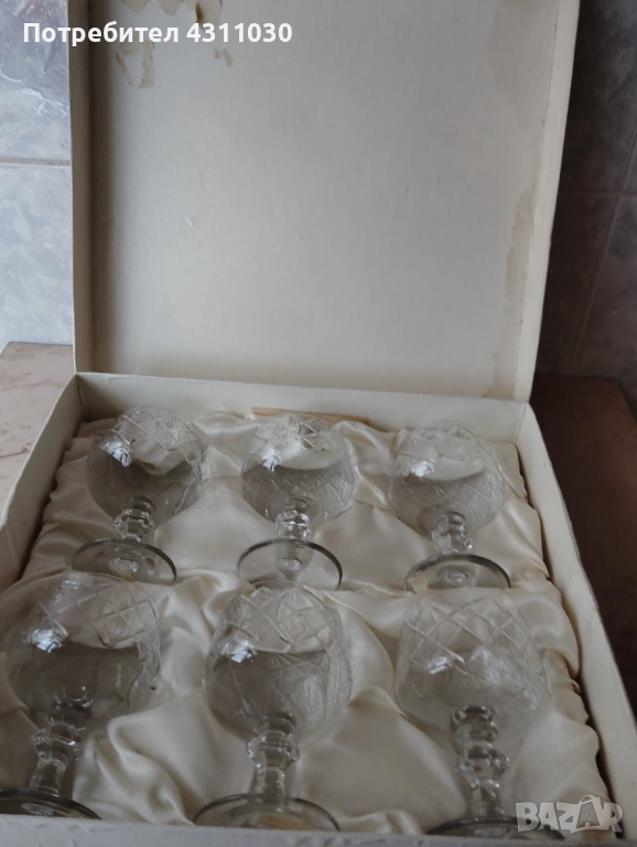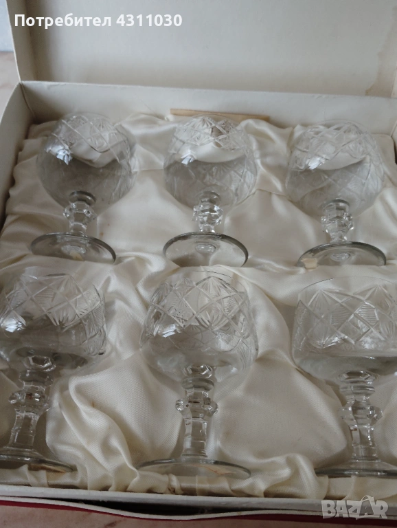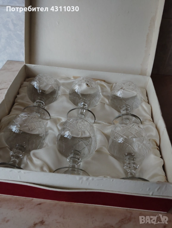 Нови кристални чаши в червена кадифена кутия от 80-те години → Обява 54203941