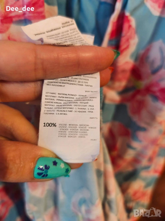 - Рокля Esmara, размер S, 65% полиестер, 35% вискоза. Има леко завалване на материята. Дължина - над коляното. Цена: 4 €