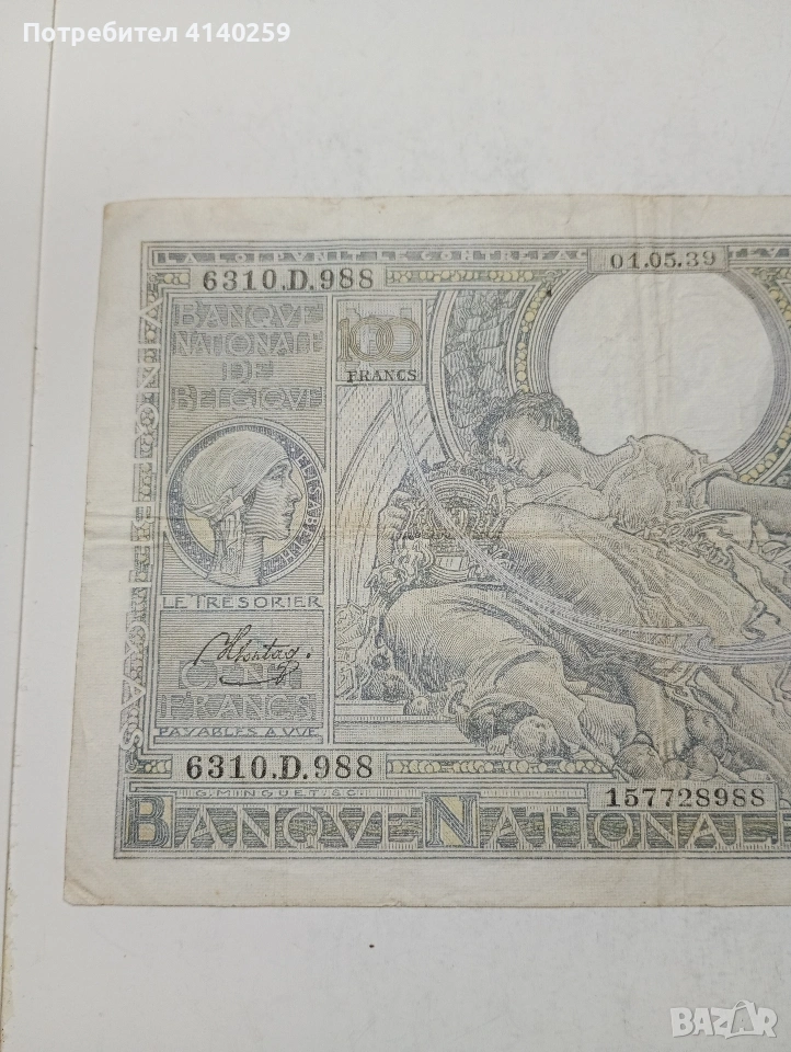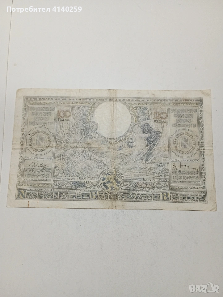 БЕЛГИЯ БАНКНОТА 100 ФРАНКА 1935 Г СЪСТОЯНИЕ ВИДИМО ПОЛУЧАВАТЕ СНИМАНАТА БАНКНОТА РАЗГЛЕДАЙТЕ ДРУГИТЕ МИ ОБЯВИ ДА КОМБИНИРАТЕ ДОСТАВКА ЕКОНТ ЗА ВАРНА ЛИЧНО