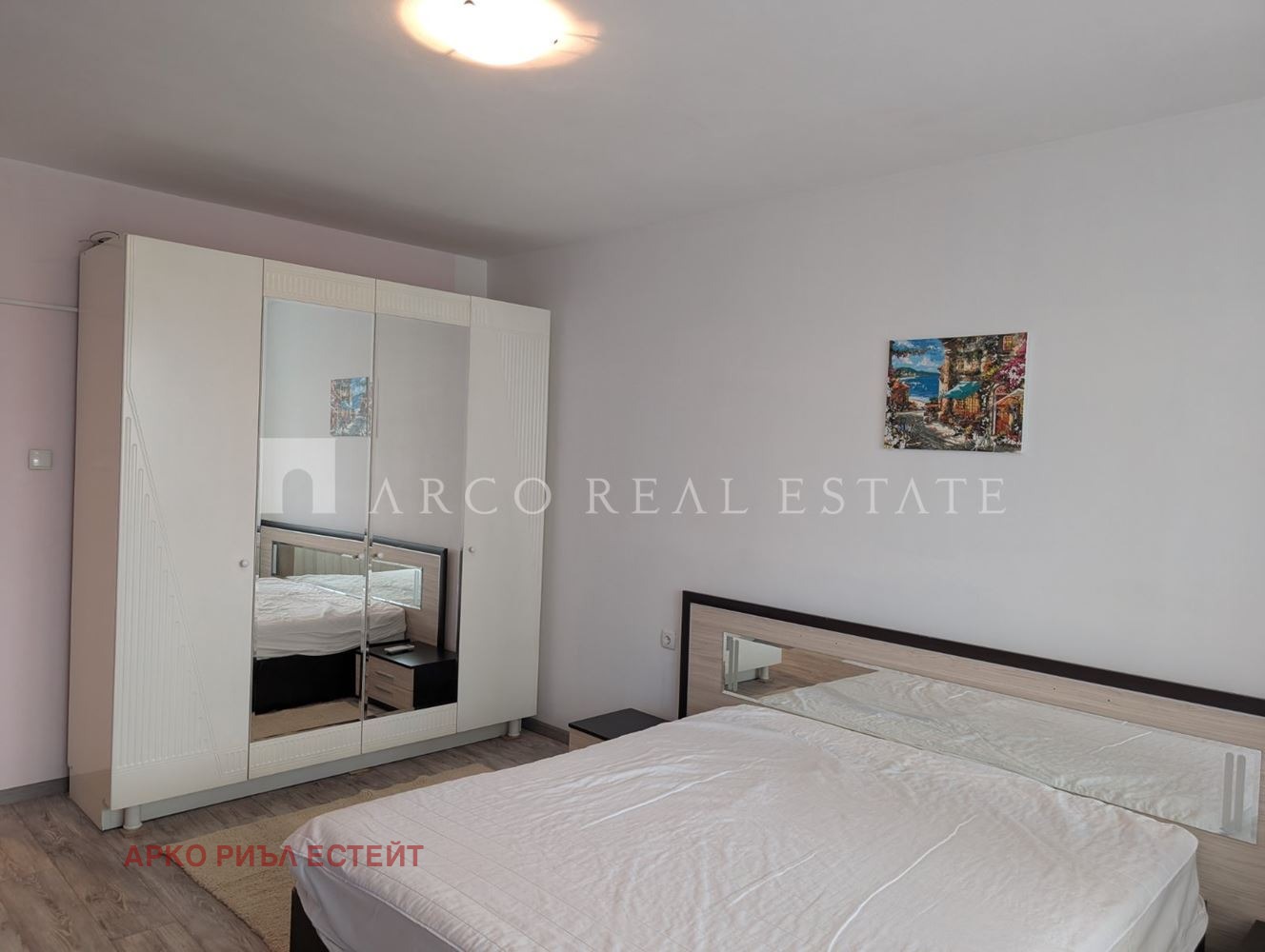 Спалня: Голям 4-ри крилен гардероб, спалня с две нощни шкафчета, ТВ. Към спалнята има остъклен балкон- лоджия.