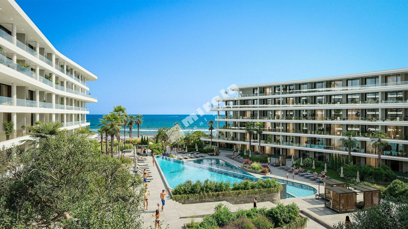 Първа линия с гледка море; Имотът има жилищен статут; Има надземно паркомясто; Сградата има асансьор; Продава се без обзавеждане; Има физическа охрана; ЕТАП НА СТРОИТЕЛСТВО: груб строеж; ОТОПЛЕНИЕ: климатик; Има 1 балкон/тераса; С довършителни дейности; Има такса поддръжка; Луксозен имот; Непреходен; Целогодишно ползване; ВИД СТРОИТЕЛСТВО: тухла; ЗАСТРОЕНА ПЛОЩ 60 кв.м; ПУСКОВ СРОК: 12.2027; ИЗЛОЖЕНИЕ: изток, гледка към басейна; СПАЛНИ: 1; БАНИ: 1; ДОГРАМА: PVC
