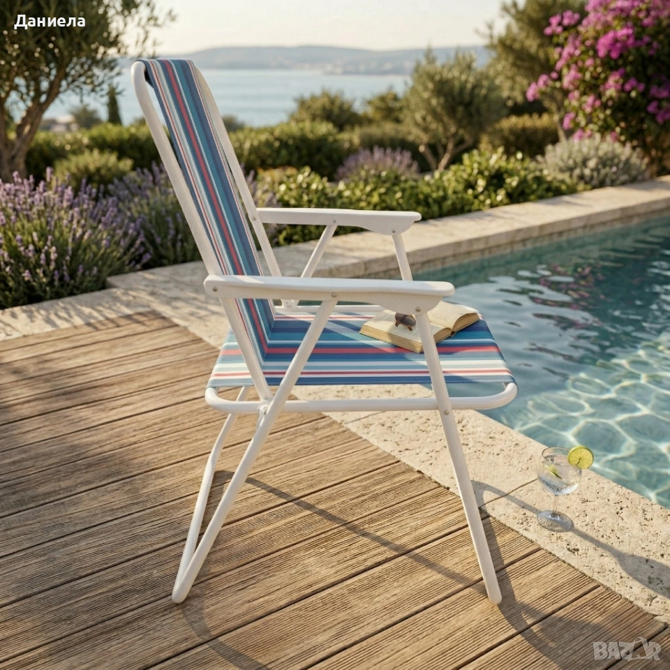 Сгъваем плажен стол на райета, 43x46x75 см – Многоцветен