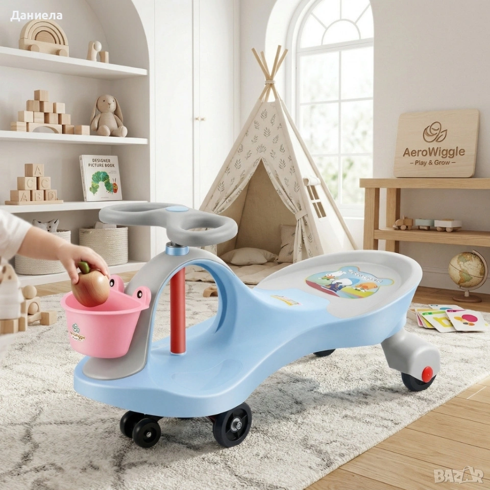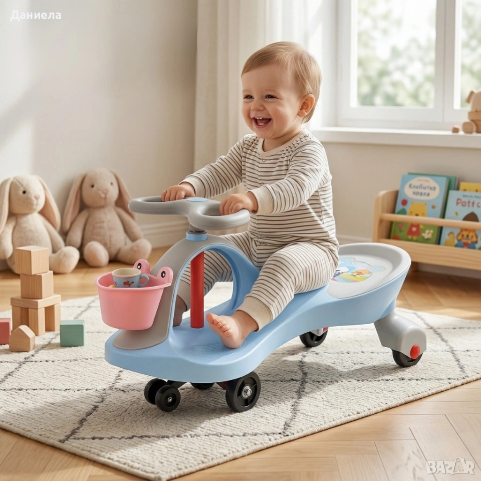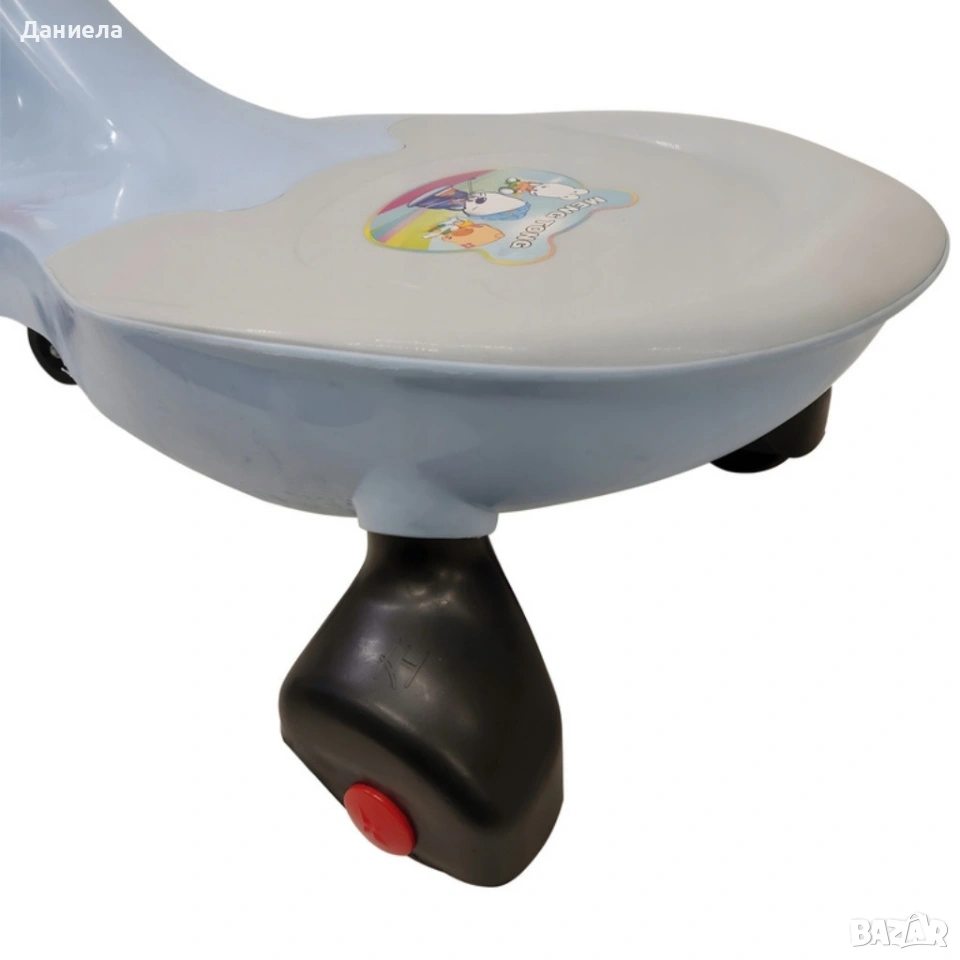 Възрастова група: от 2+ години; Размери: 77 × 32 × 42 см; Тегло на продукта: 3,5 кг; Товароносимост: до 100 кг; Материал: удароустойчива пластмаса с гумени колела; Управление: волан с 360° завъртане за задвижване напред/назад; Употреба: подходяща за закрити и открити площи; тихи колела за домашна игра.