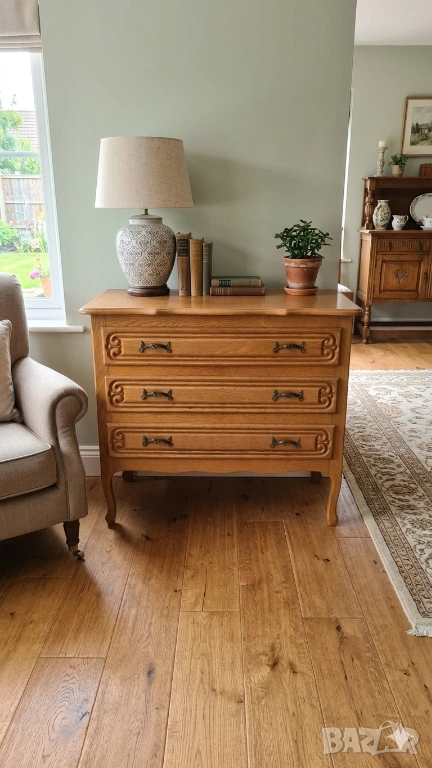 Мебелта е отлично запазена, със здрави сглобки и плавно движение на чекмеджетата.