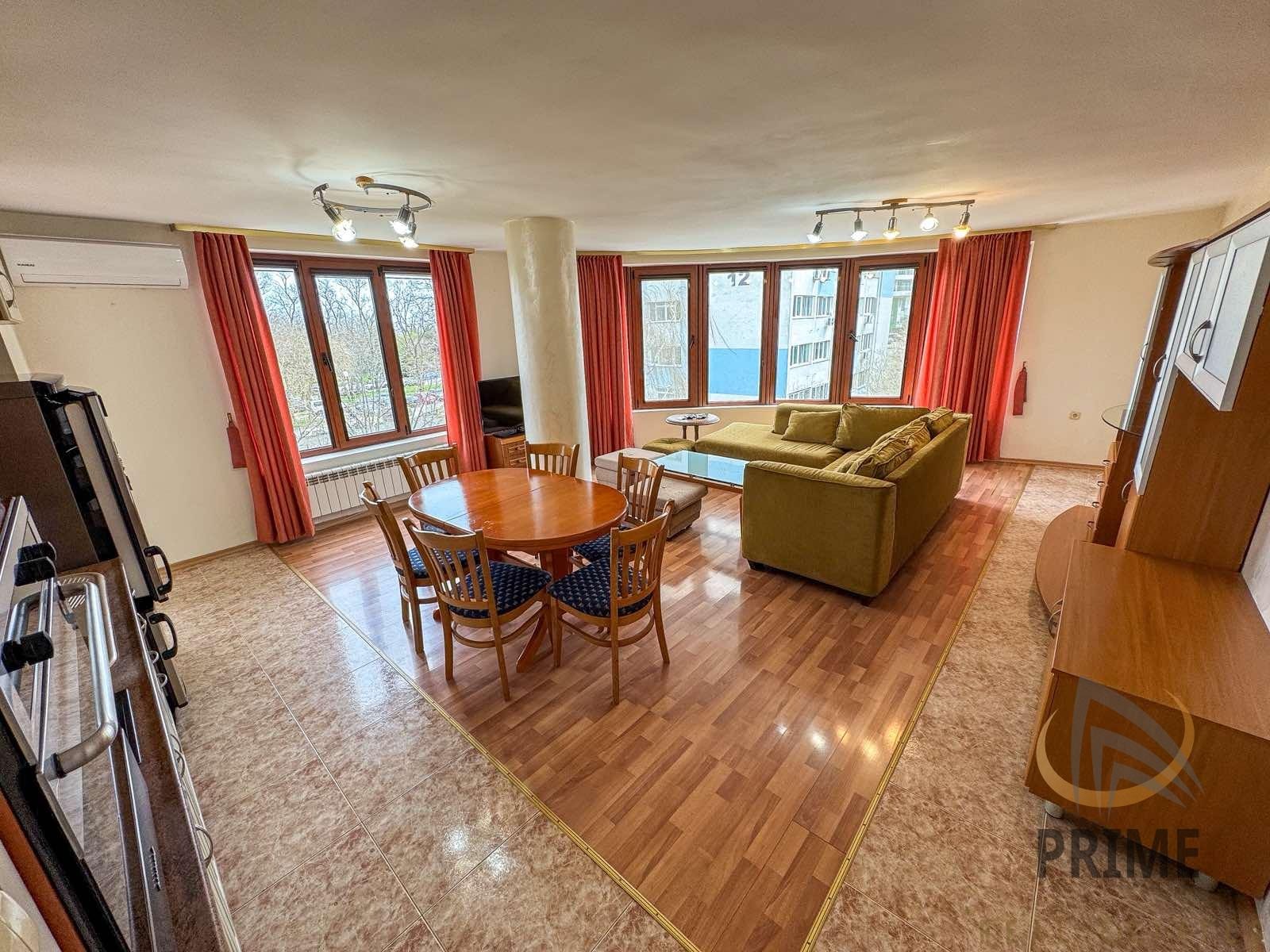 Многостаен апартамент под наем, разположен в Лазур, до морската градина. Намира се близо до флора, ресторант Хепи и Пантеона. Имота е много добре поддържан, основно почистен и готов за наемане.