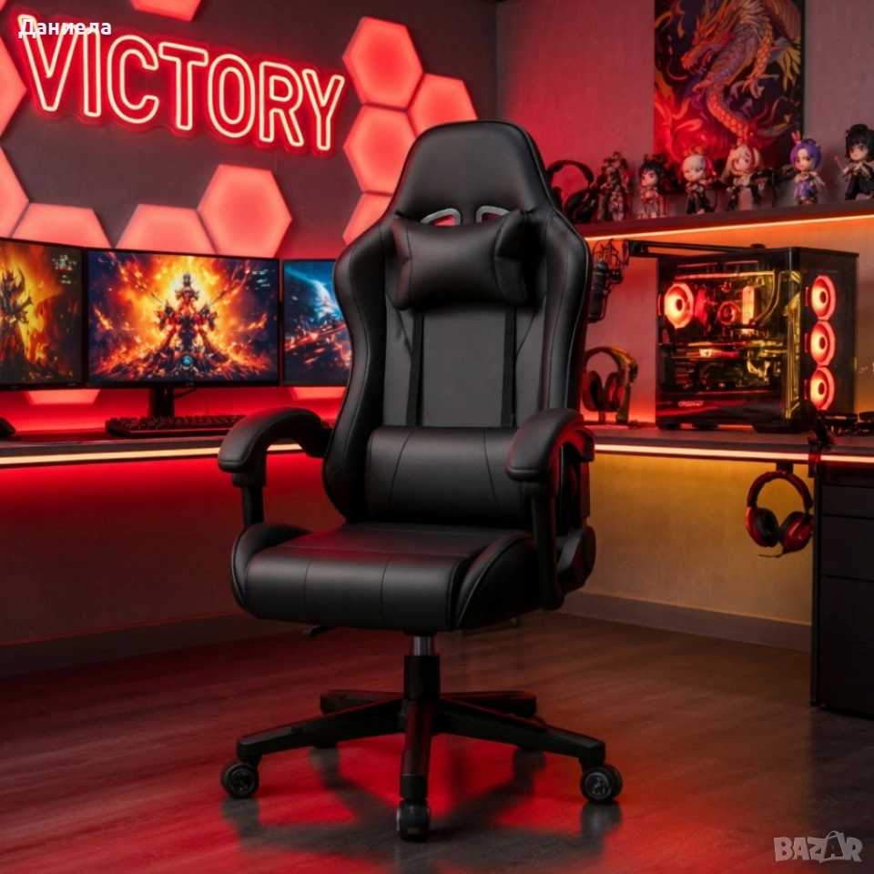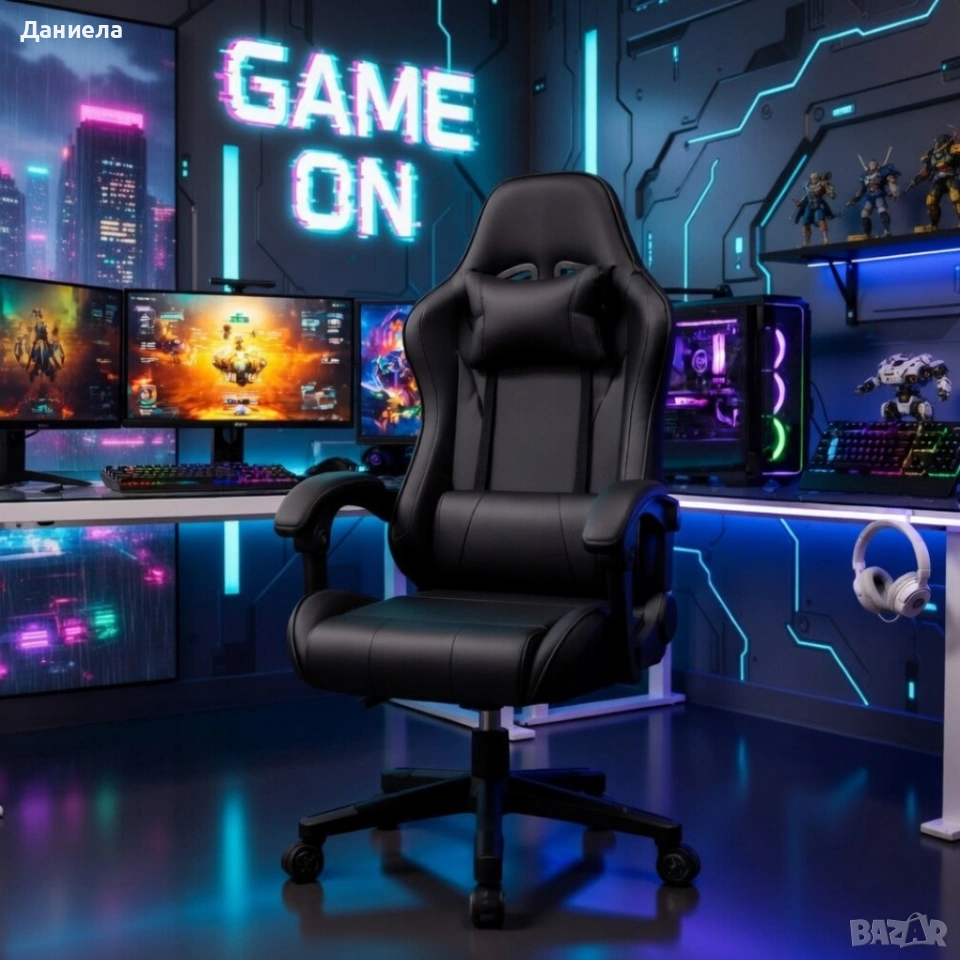 Ергономичен офис и геймърски черен стол – Максимален комфорт за гърба и врата, регулируем