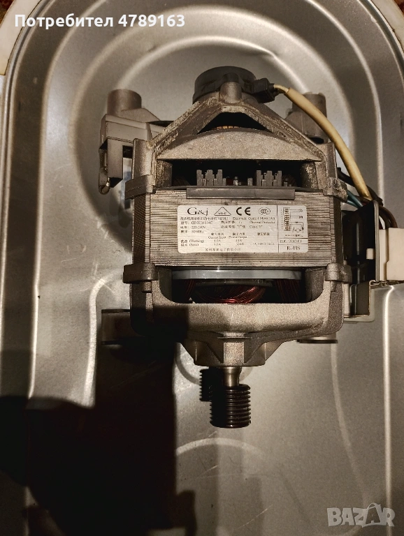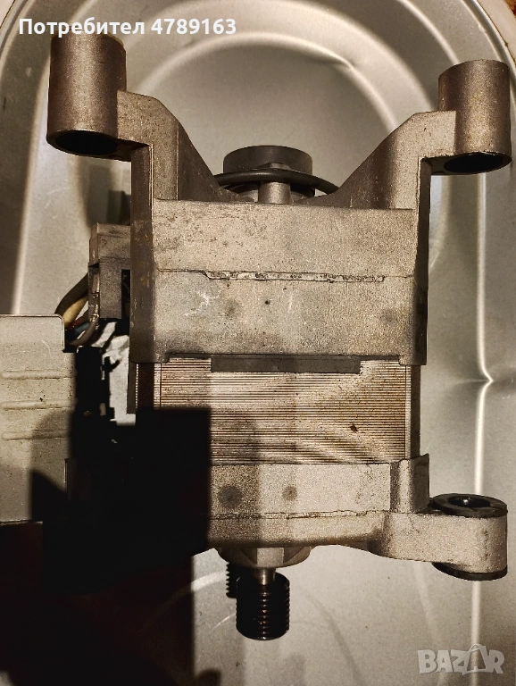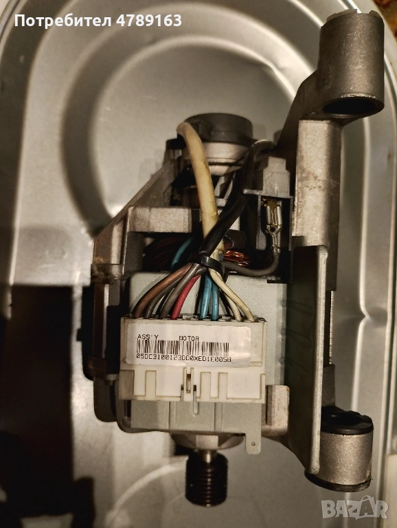 Тахогенератор (Датчик за обороти): Намира се в горния край (противоположния на шайбата). Това е малка намотка с магнит, която съобщава на електрониката на пералнята точно с каква скорост се върти моторът във всеки един момент.