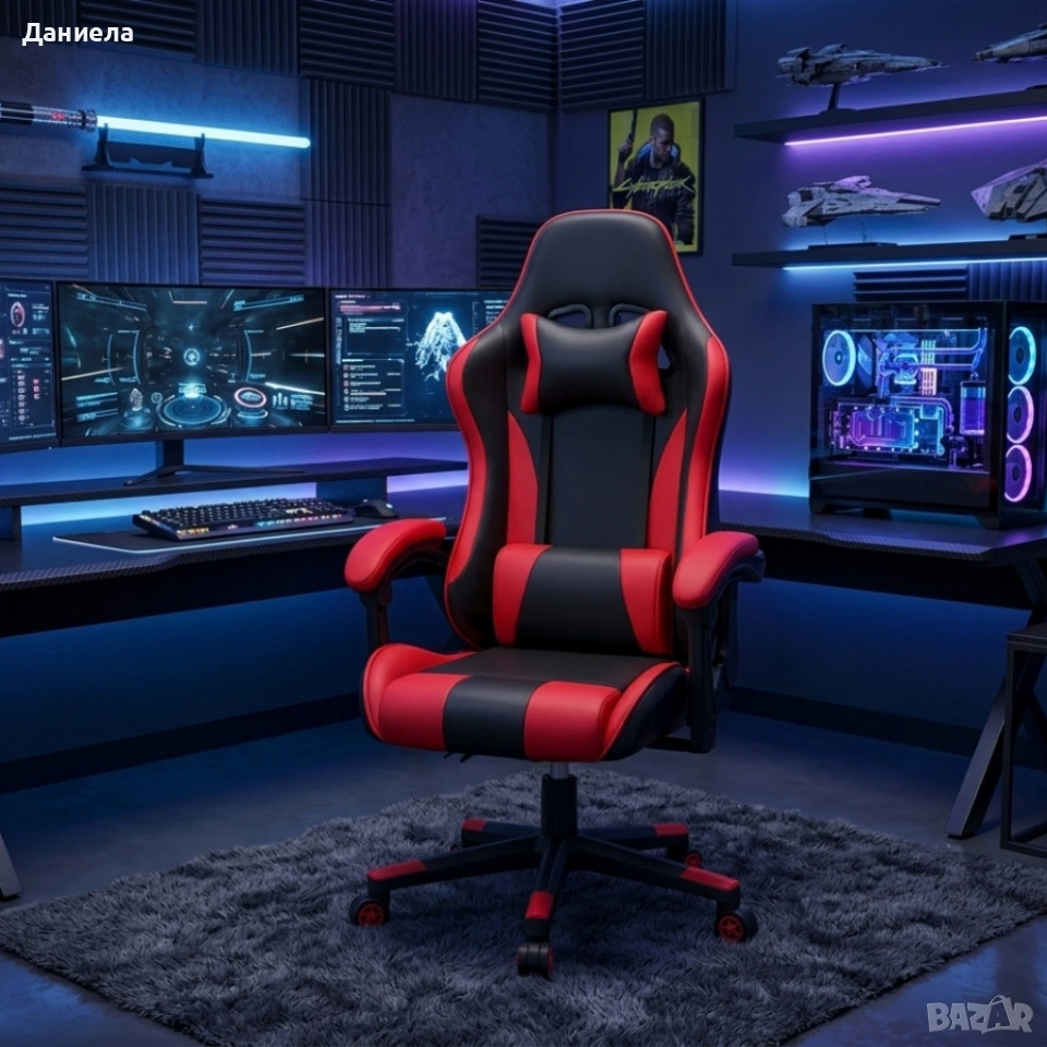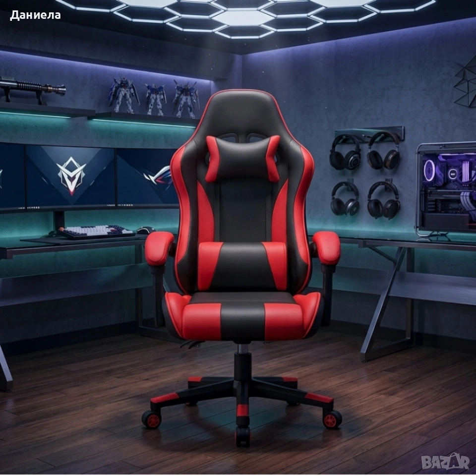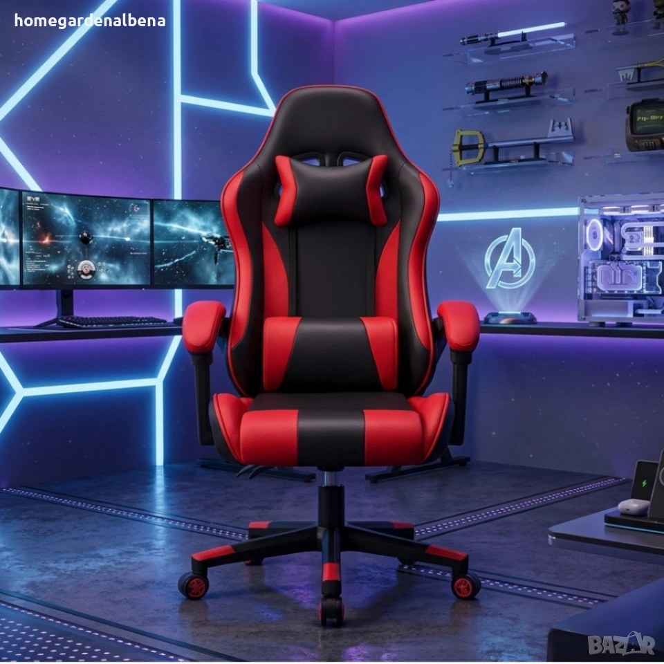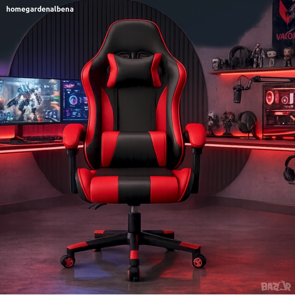 Ергономичен офис и геймърски червен стол – Максимален комфорт за гърба и врата, регулируем
