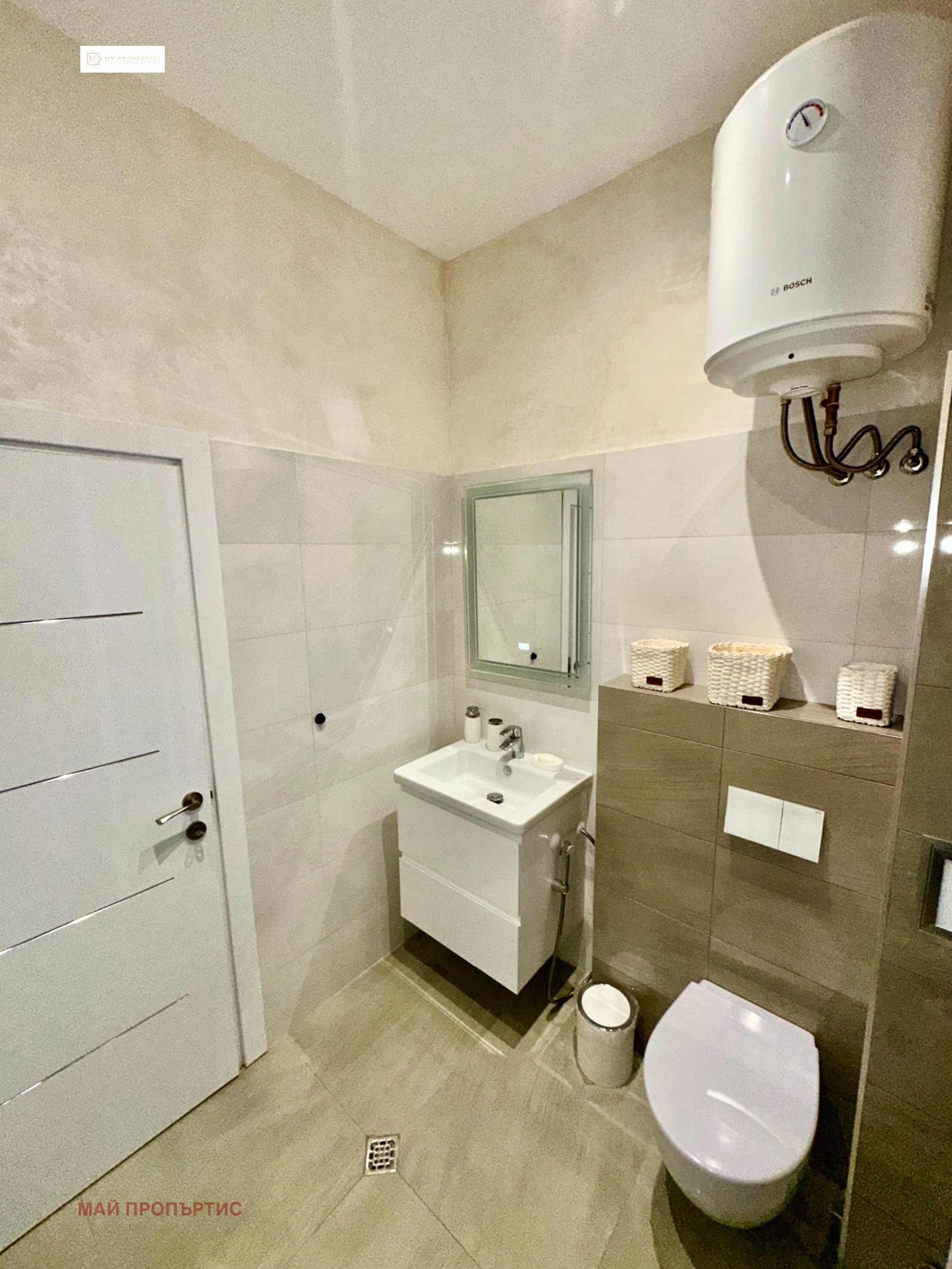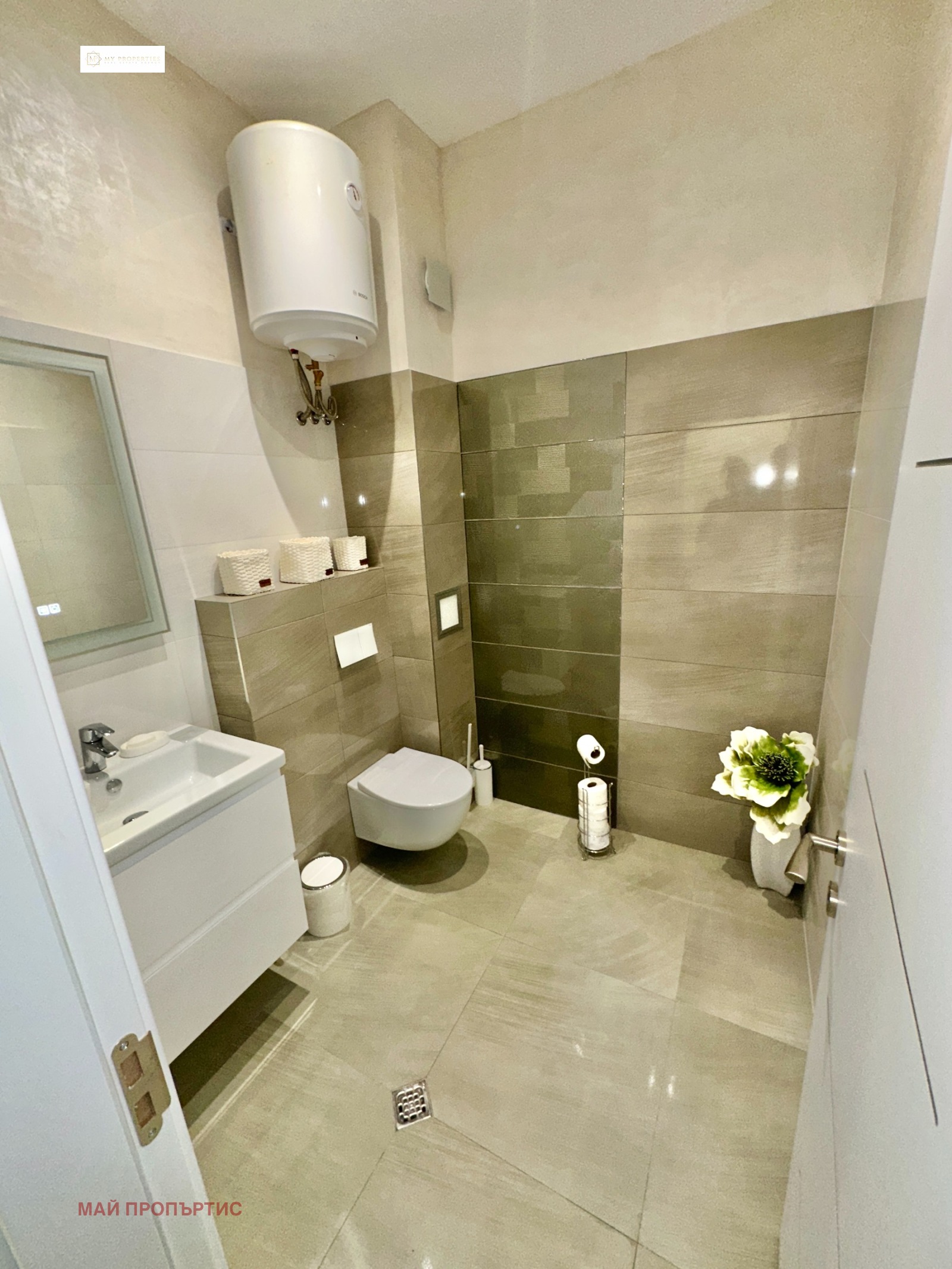 Санитарно помещение: Испански гранитогрес, вградена структура за тоалетна и стъклен бутон на VIEGA, мивка с PVC шкаф Cersanit, бойлер BOSCH