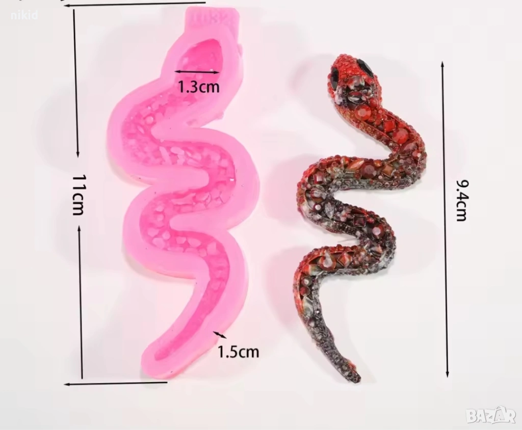 змия с камъни силиконов молд форма фондан шоколад гипс декор → Обява 54204573