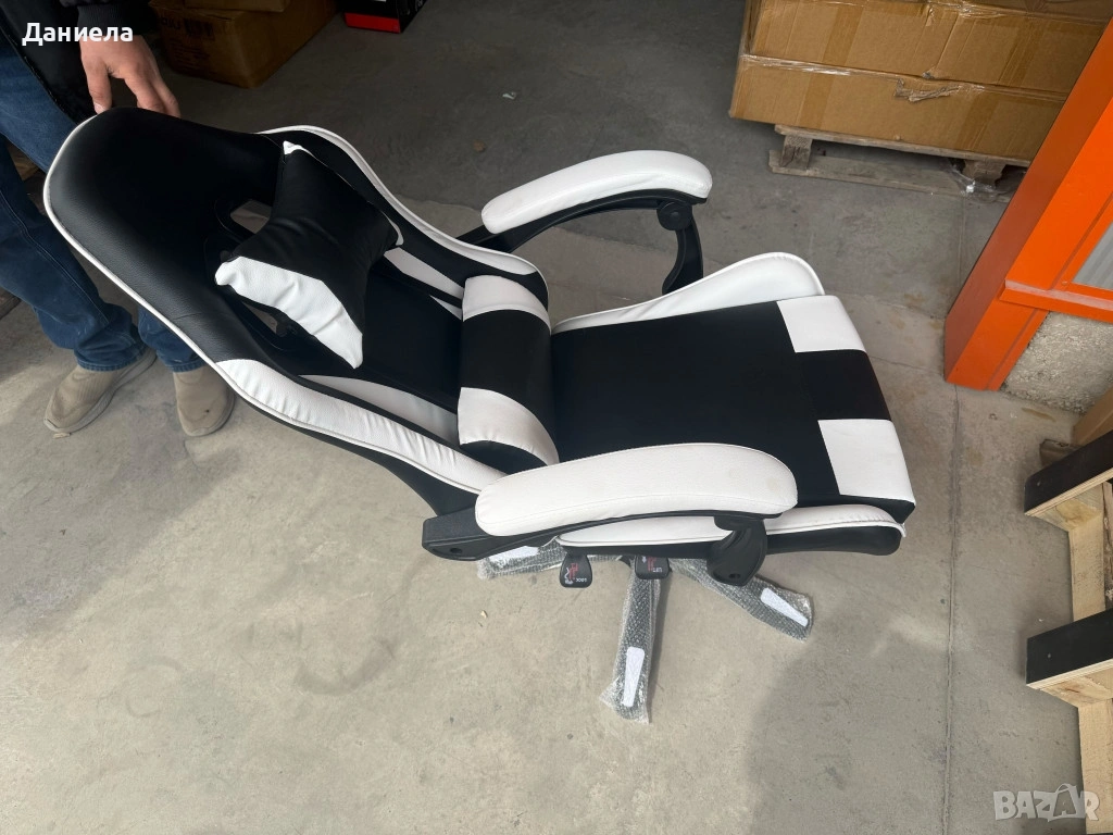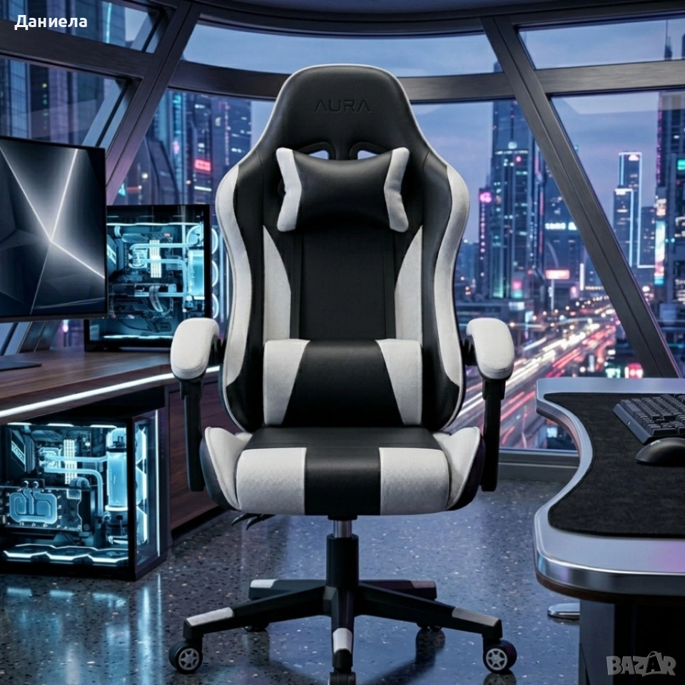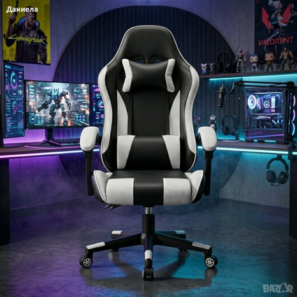 Ергономичен офис и геймърски бял стол – Максимален комфорт за гърба и врата, регулируем