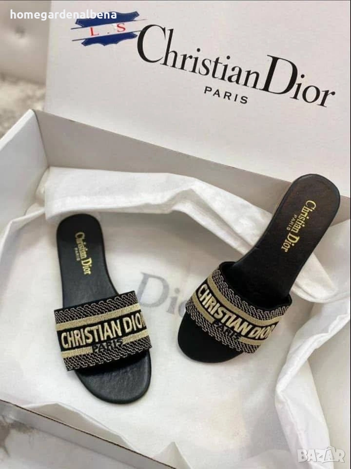 Дамски плоски чехли с ефектно бродирано лого на лентата. Предлагат се в три цвята — бели, розови и черни. Удобни и стилни — подходящи за лято, плаж и ежедневие.