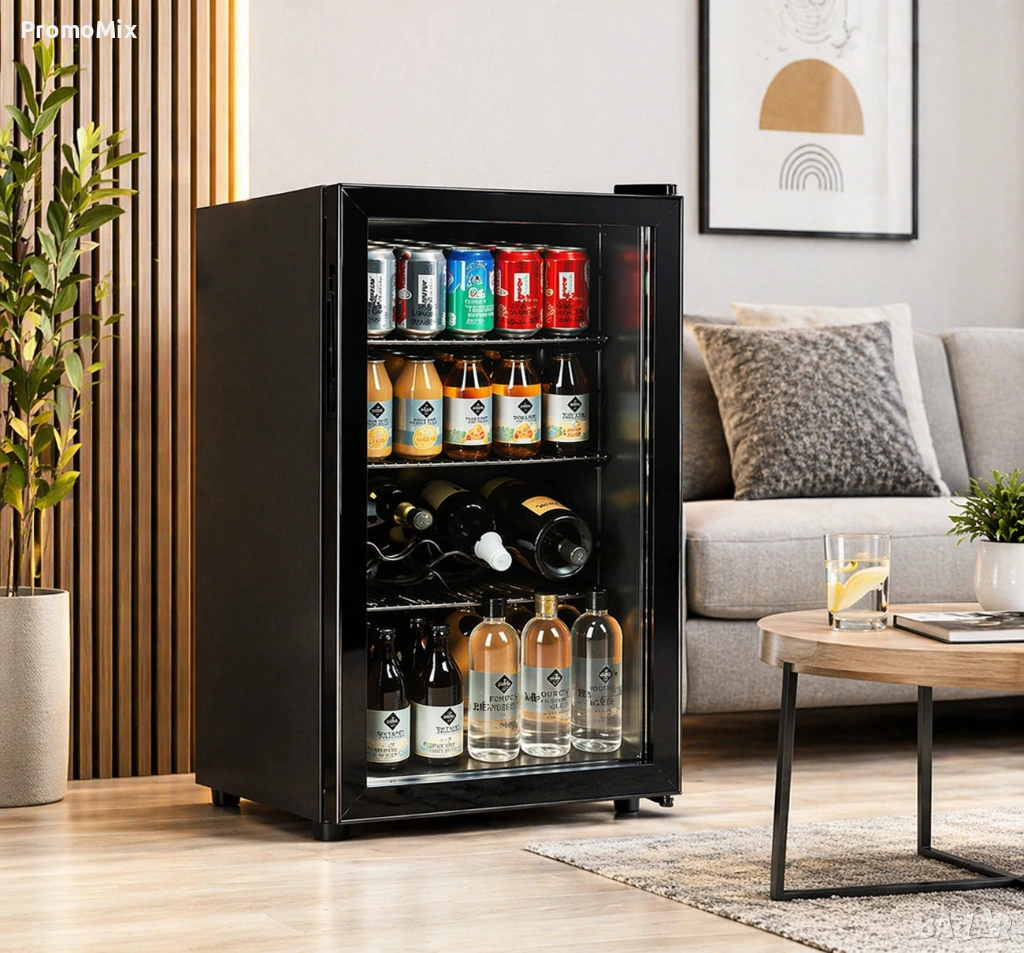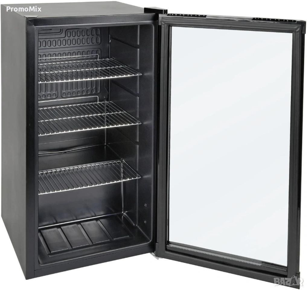 Витрината разполага с 4 рафта,от които 3 могат да се поставят на различни нива според напитките, а максималното им натоварване е 8 кг (на рафт).