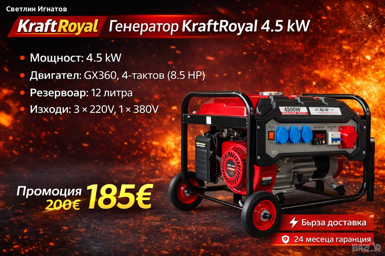Технически характеристики на Трифазен четиритактов генератор KraftRoyal 4.5 kW с дисплей