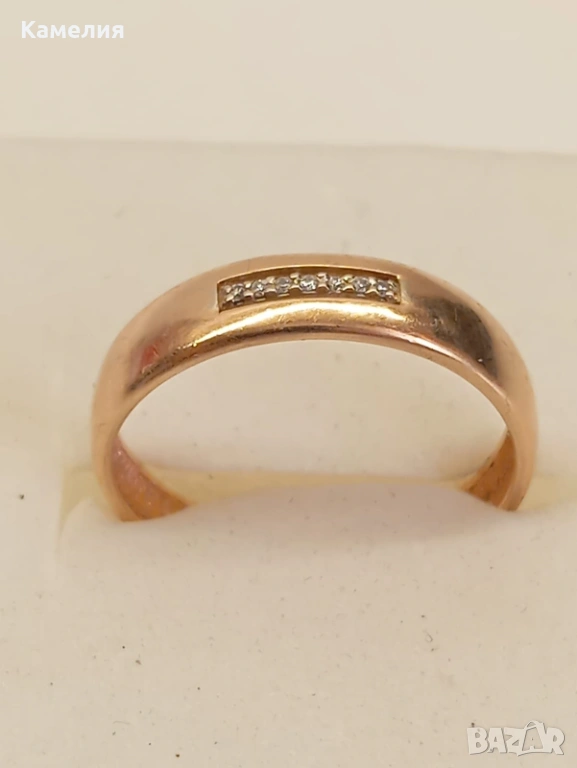 Руски златен пръстен с брилианти. Проба 585 глава с кокошник. Грамаж 2,26 грам. Диаметър 16,5-17 мм.