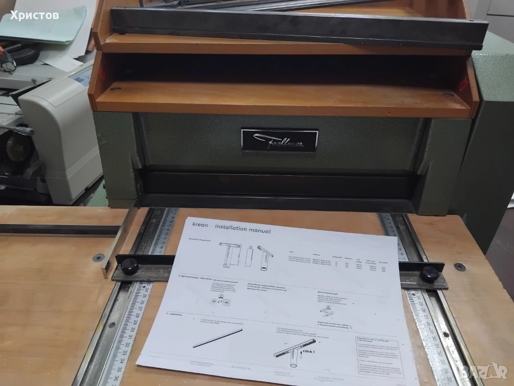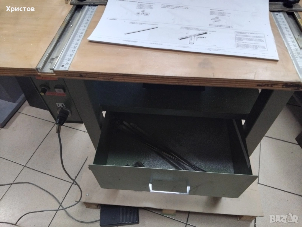 Машината работи с трифазен ток. Идеална за перфориране на готови тетрадки за календари, химизирани формуляри и други.