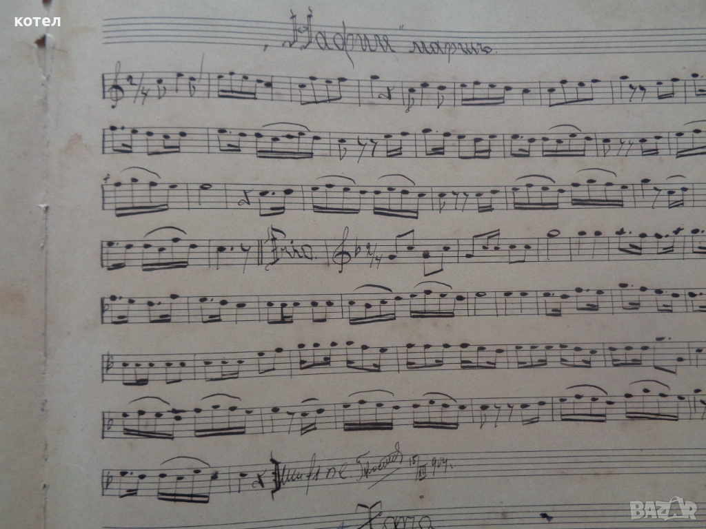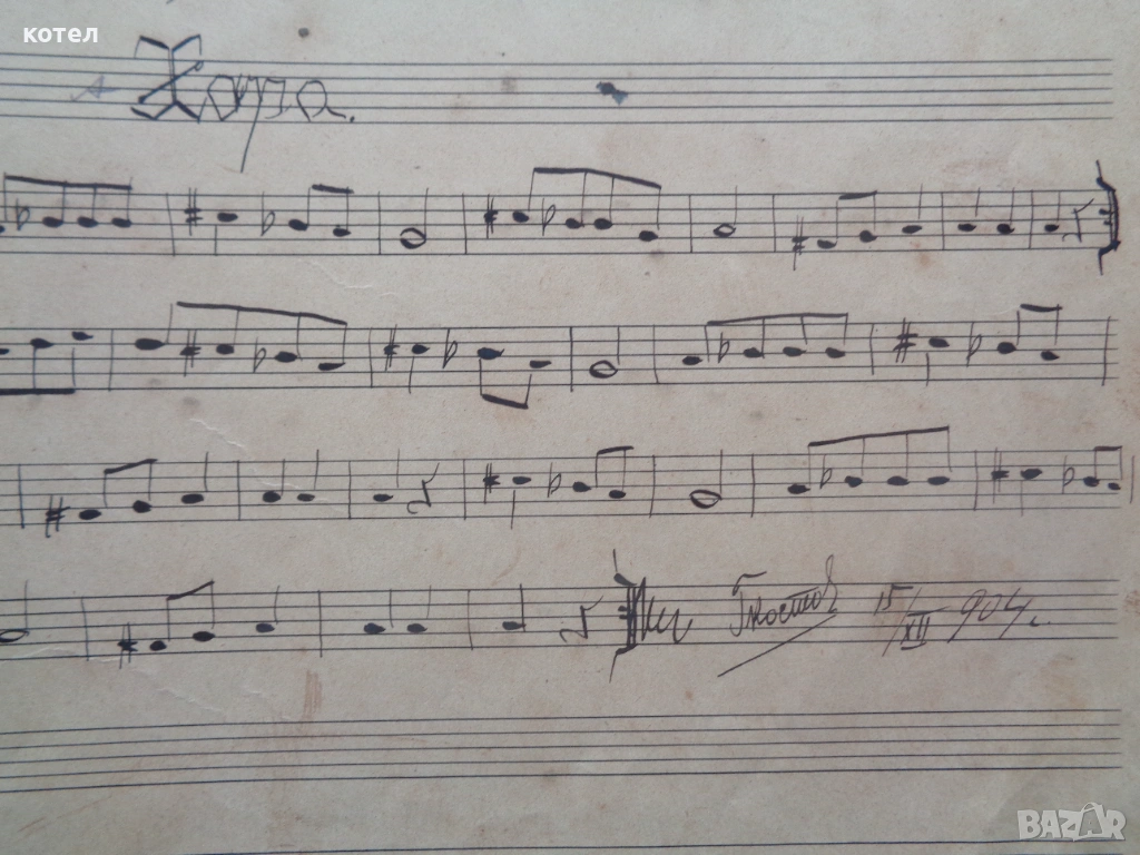 Продавам Уникален Музикален Ръкопис (Автограф) от 1904 г. – Георги Костов, Габрово/Русе