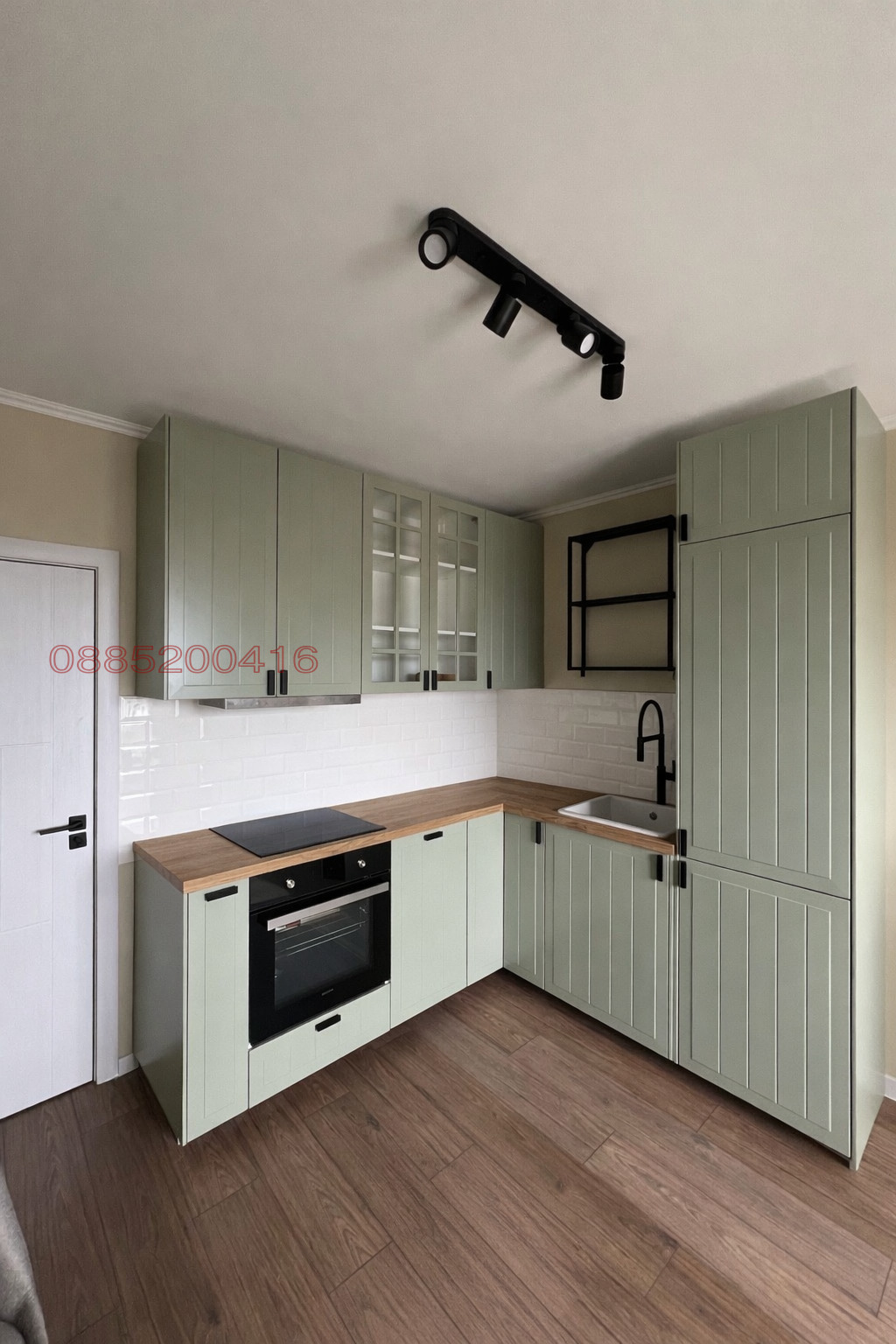 Апартамента е с напълно оборудвана кухня (вкл. фурна, индукционни котлони аспиратор, миялна машина и вграден хладилник).