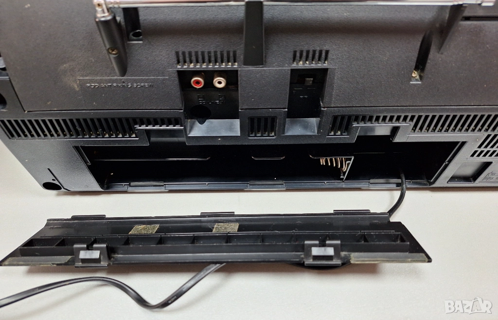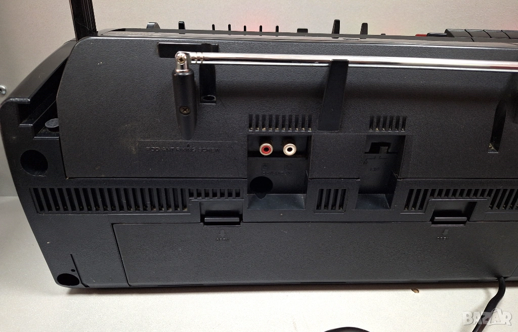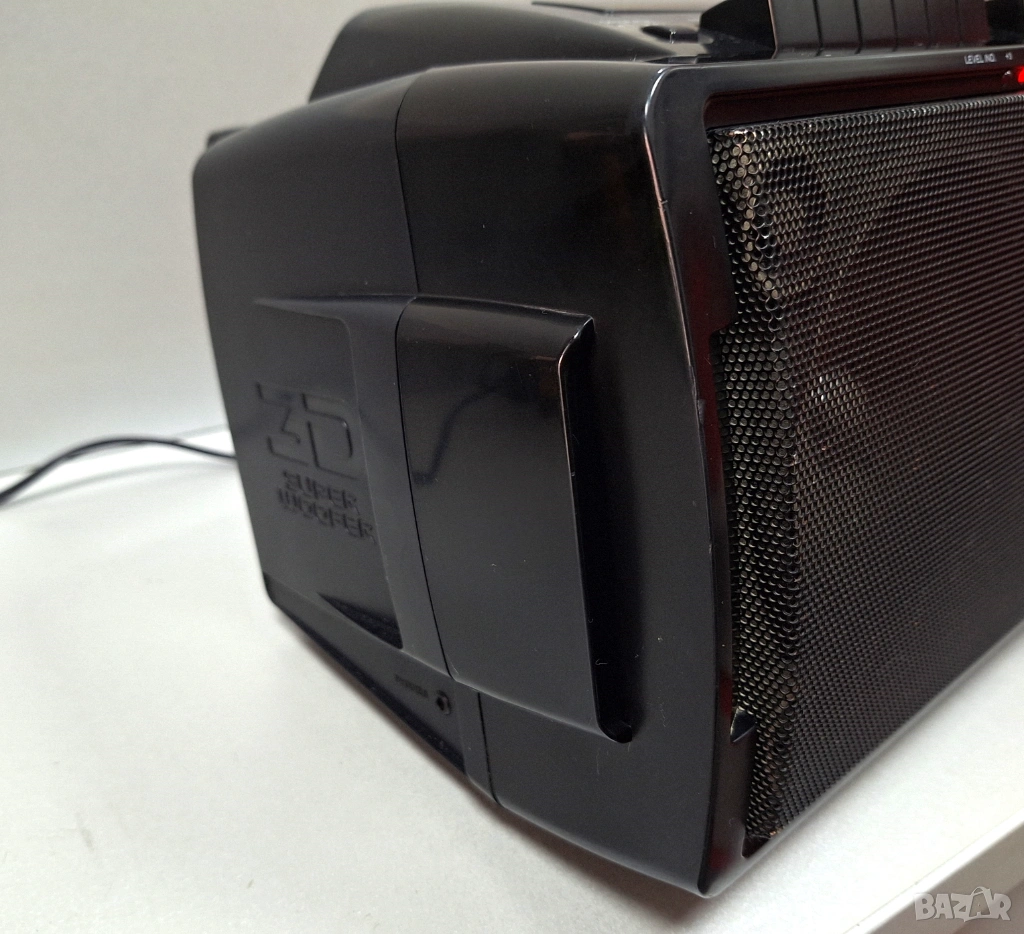 • Този модел е известен като "бумбокс" и разполага с двоен касетен дек и AM/FM радио.