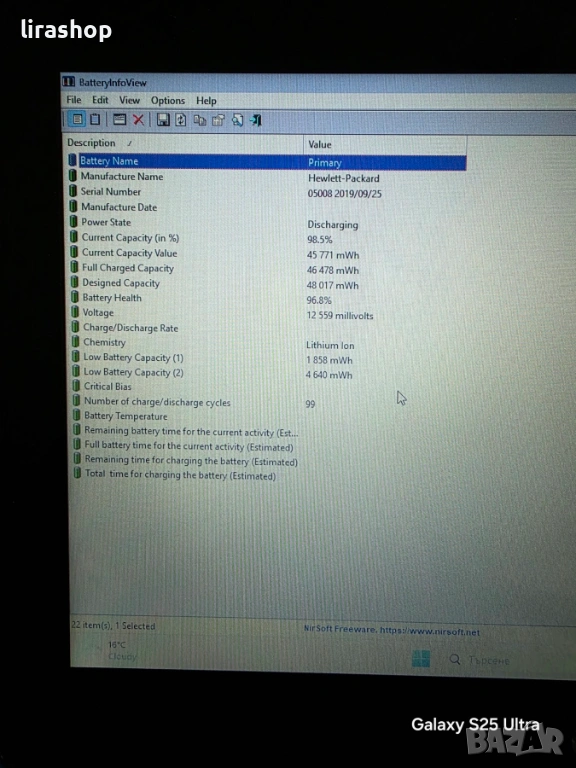 Батерията издържа над 4 часа, в комплект със зарядно. Инсталиран с windows 11 Pro x64 и всички необходими програми, готов за ползване.