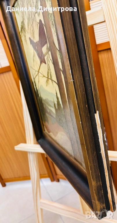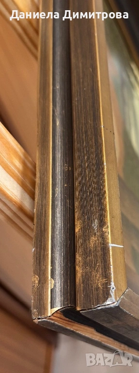 Има незначителни охлузвания по рамката и от едната страна повърхностно отлюспване от дървото. Снимала съм подробно.