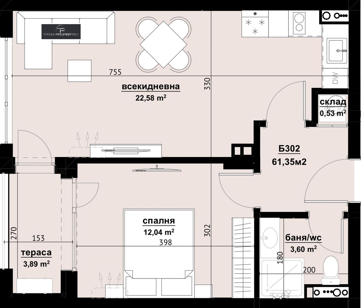 Агенция за недвижими имоти Титан Пропъртис предлага на Вашето внимание двустаен апартамент в нов жилищен комплекс с локация ж.к. Славейков.