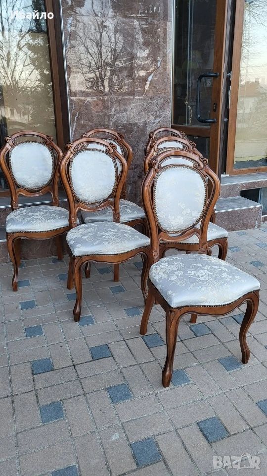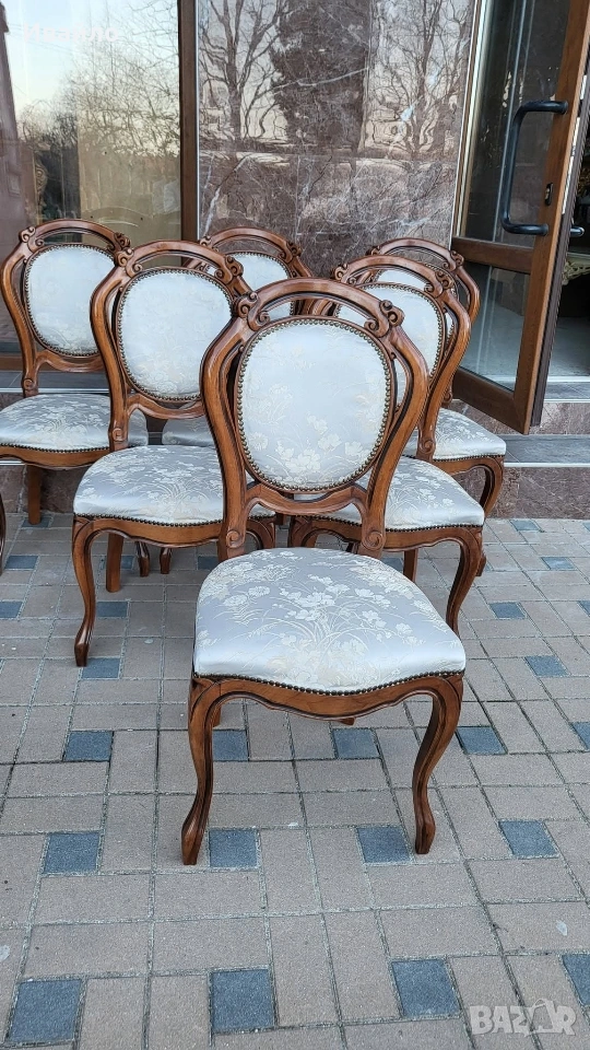Днес ще ви предложим Красиви трапезни столове в класически бароков стил 6 броя столове тип „медальон“, внос от Италия .