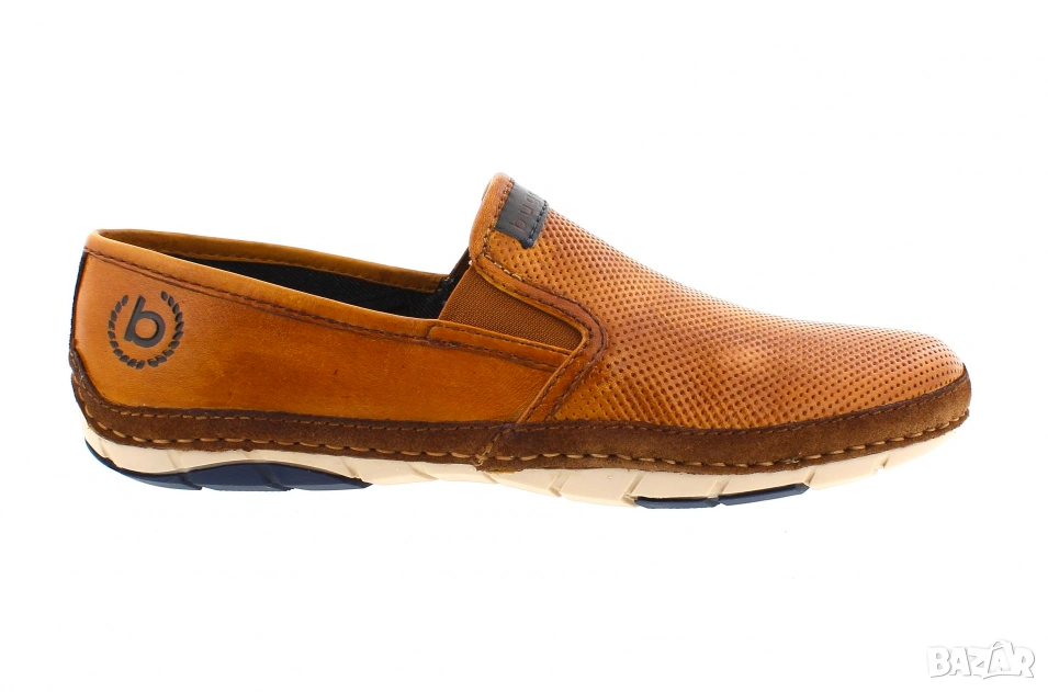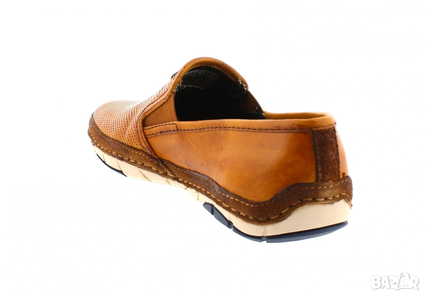 Тези обувки са изработени от висококачествена естествена кожа в цвят коняк с характерна декоративна перфорация в предната част. Моделът се отличава с комфортна стелка с Memory Foam (мемори пяна), която се адаптира към стъпалото, и гъвкава подметка за удобно носене през целия ден.