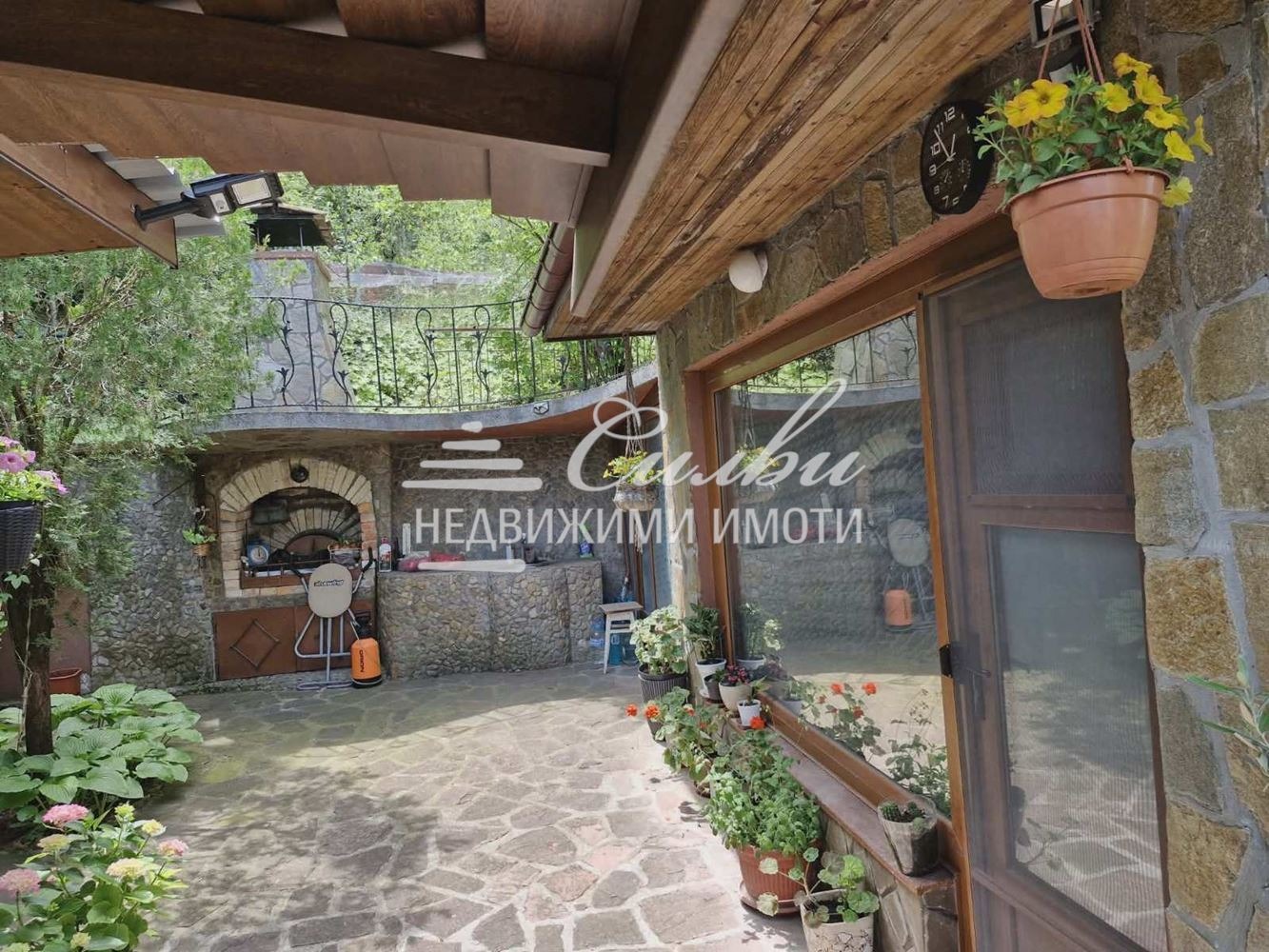 Двуетажна ТУХЛЕНА къща на ПЛОЧА с ДВОР И ГАРАЖ кв. Пожарната. Имотът е ситуиран в парцел с площ от 1378кв.м. с РЗП от 191кв.м. и включва основна двуетажна къща, втора самостоятелна жилищна сграда. Разпределение на основната къща: входно антре, просторен и светъл хол, кухня, ТРИ самостоятелни спални, баня с тоалет, три остъклени тераси с ПАНОРАМНА ГЛЕДКА, изба и ГАРАЖ. Втора самостоятелна сграда (тип студио): спалня, кухня, баня с тоалет. Има самостоятелно помещение за посрещане на гости, селскостопанска постройка с двор, работилница и складови помещения с тоалетна, оранжерия от поликарбон с капково напояване. Имотът е в отлично състояние с висок клас PVC дограма, нови интериорни врати, ВЪТРЕШНА и ВЪНШНА изолация. Подовата настилка е от естествен и ламиниран паркет, теракота. Отоплението/охлаждането е решено посредством 5 КЛИМАТИКА и локално парно с КАМИНА. Разполага с красиво озеленен и отлично поддържан двор с плодни и декоративни дървета и храсти, настилки от естествен камък, обособена барбекю зона с голяма пещ, възможност за паркиране на 5+2 автомобила. Има соларни системи за топла вода и електричество, както и система за събиране на дъждовна вода.