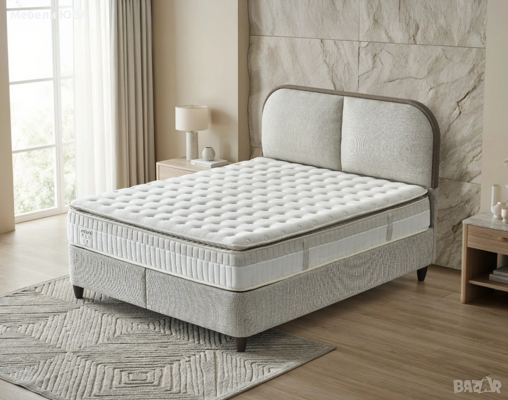 - Комфортен матрак с покет пружини – Осигурява равномерна опора на тялото и добра устойчивост при натоварване.