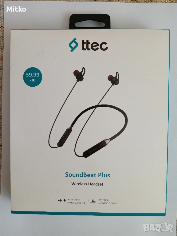 Чисто нови безжични слушалки ttec SaundBeat Plus. Никога не са използвани.Бяха ми подарък, но аз не използвам слушалки и са ми излишни.В комплекта има няколко вида гумени тапи, за да може да се настроят максимално удобно към всяко ухо. In-Ear дизайн на слушалките. Издръжливост на батерията до около 30 часа, което ви гарантира дълго използване без зареждане. Идеални за слушане на музика във фитнеса или при практикуване на всякакъв друг спорт.За София може лично предаване,но мога да изпратя по Еконт или Спиди.
