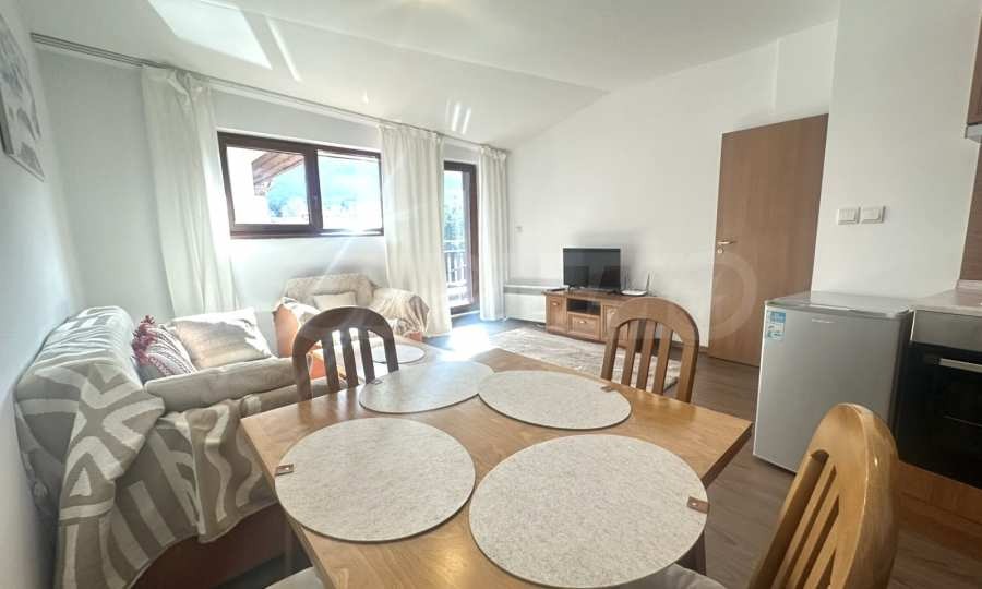 Апартаментът e напълно обзаведен и оборудван с вскичко необходимо за едно удобно и спокойно ежедневие,подходящ както за целогодишно живеене,така и за ваканционен престой.Намира се в спокойна и добре уредена зона, в близост до магазини,ресторанти и с удобен достъп до ски зоната.
