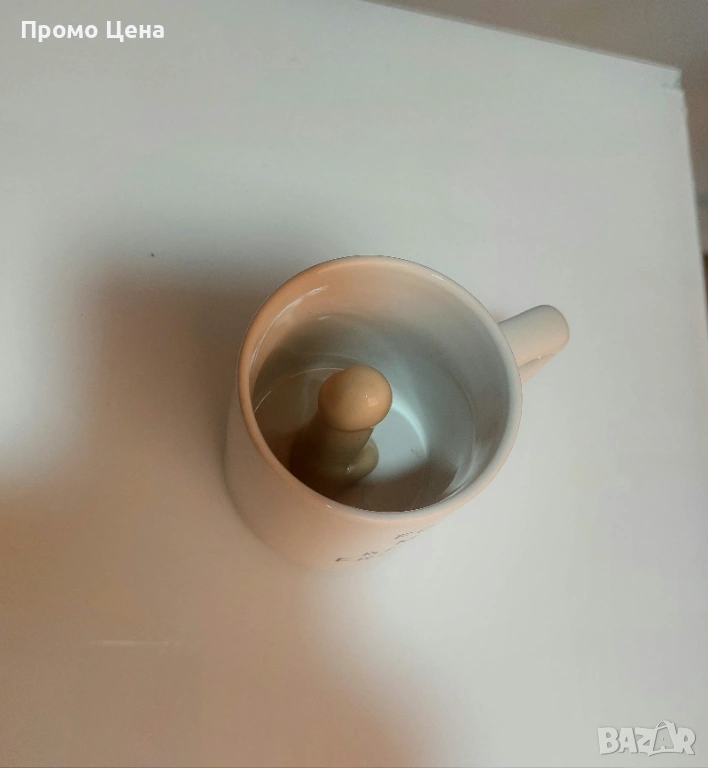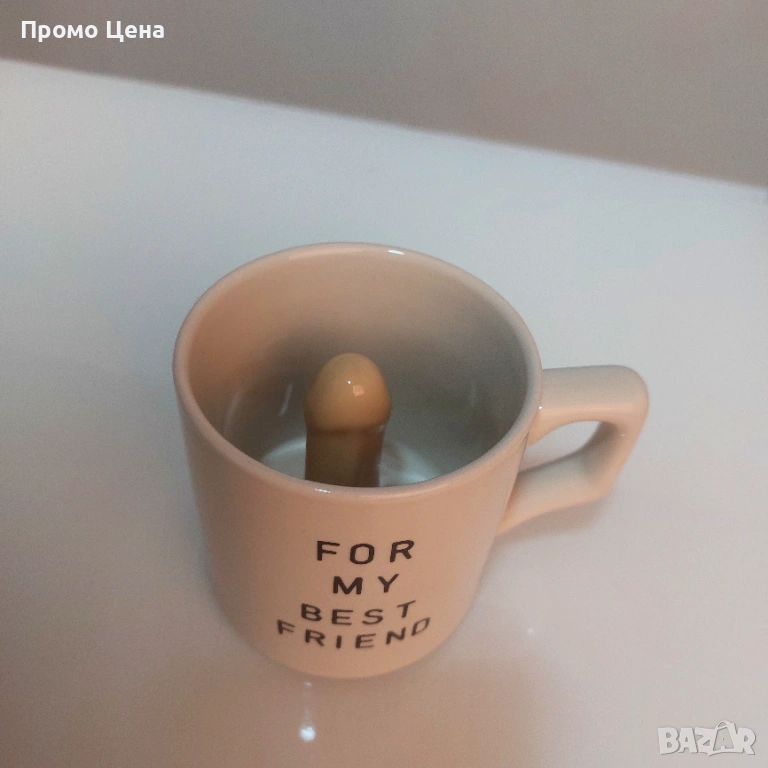 Продавам уникална керамична чаша, която гарантирано ще предизвика смях! Отвън изглежда съвсем невинна, с надпис на английски: „FOR MY BEST FRIEND“ (За моя най-добър приятел). Истинската забава обаче започва, когато кафето или чаят бъдат изпити - на дъното се разкрива... хм, неочаквана скулптура.