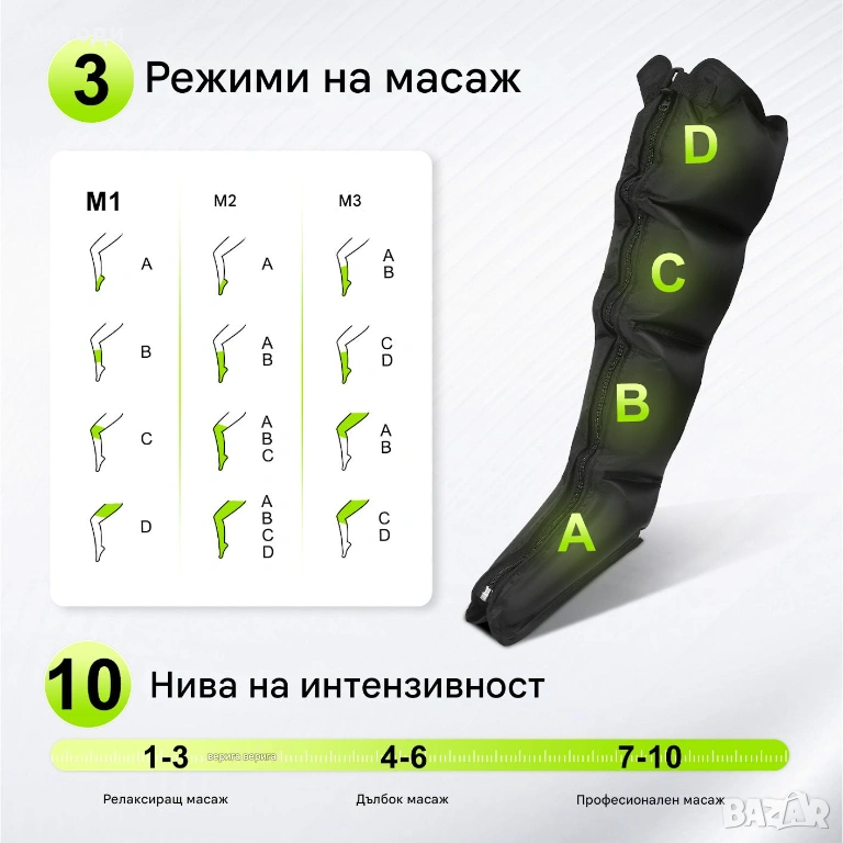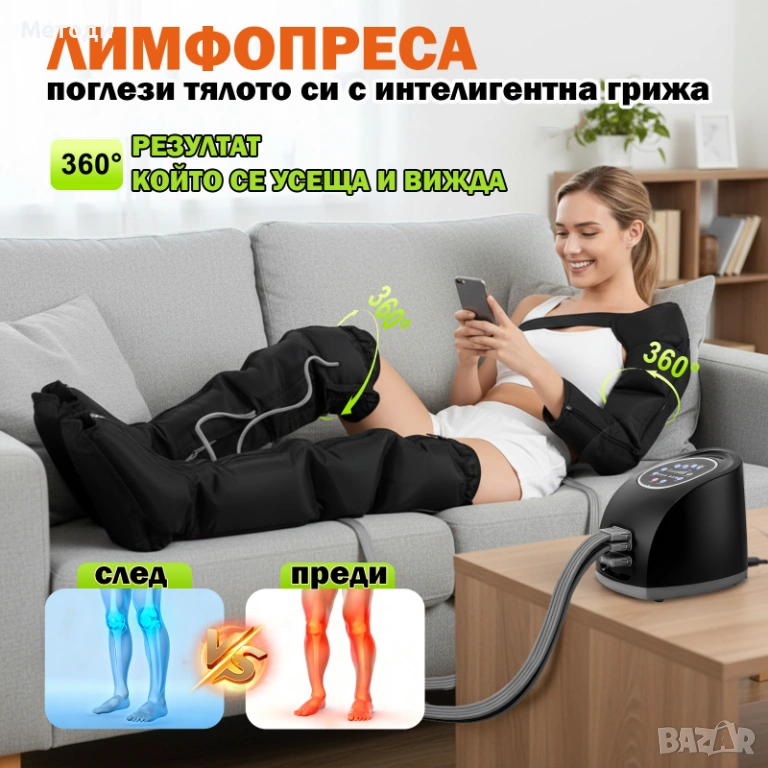 Нова лимфопреса за крака и ръце | Компресионен масажор | Лимфен дренаж | 10 степени | При отоци и ум