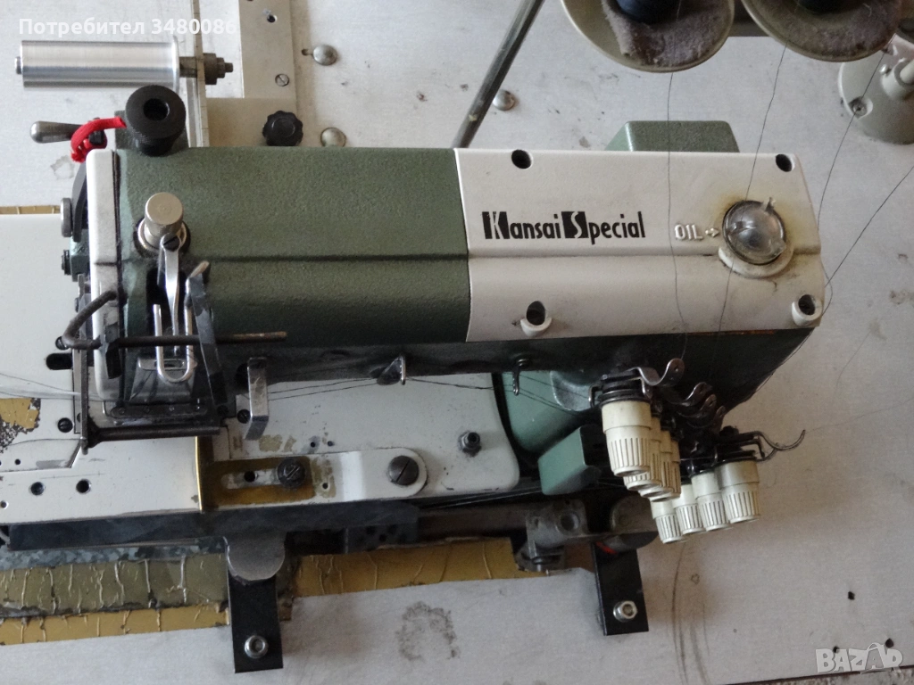 Продава се професионална боксер шевна машина Kansai Special ( Кансай специал ) – с 4 игли; валяк за изтеглянае на ластика; освен колан на панталон може да шие безконечна лента; на трифазен ток; машината е запазена, прошита и всичко по нея работи.
