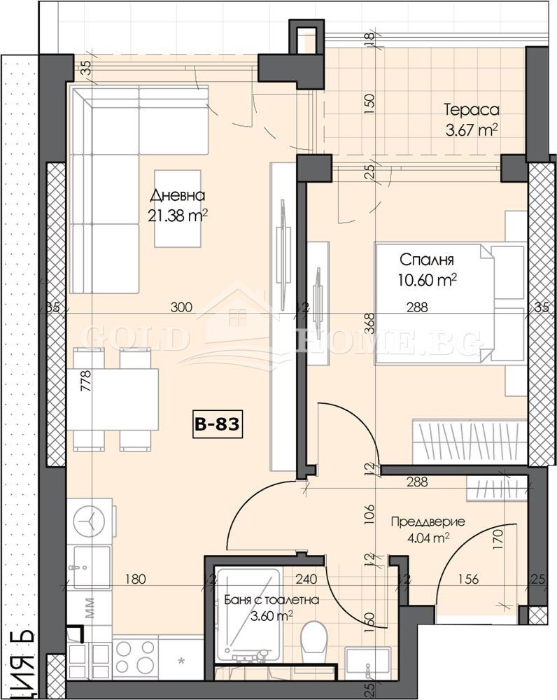 Агенция за недвижими имоти 'ГОЛД ИМОТИ' Ви представя модерна сграда състояща се от четири жилищни секции , които ще предложат разнообразие от жилища, офиси и търговски обекти, интегрирани в удобна и елегантна градска среда.