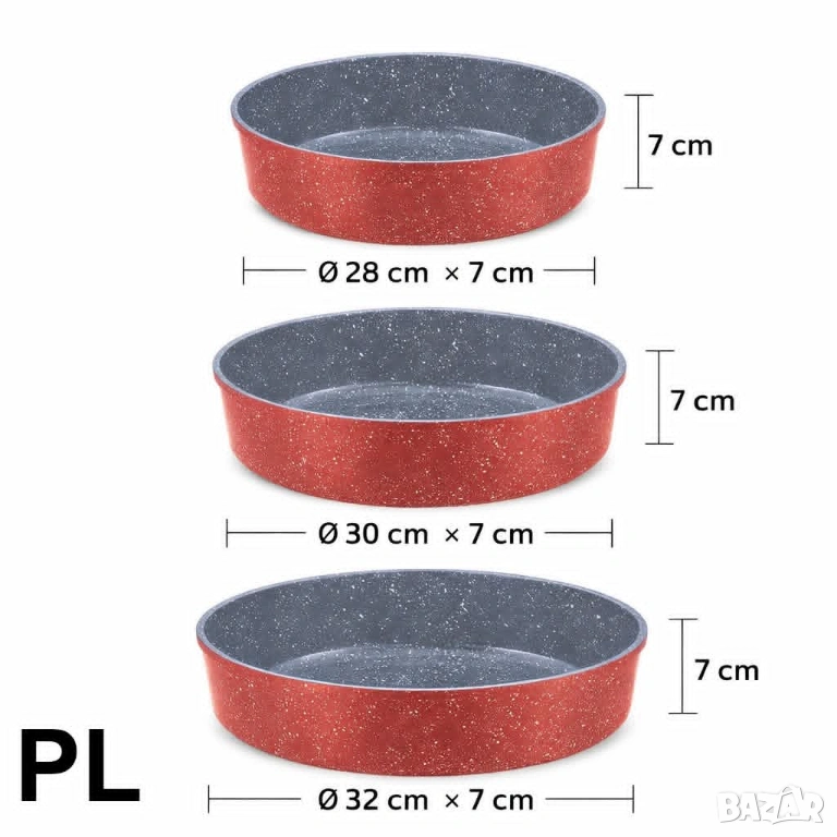 Предлага се в три практични размера — 28/7 см, 30/7 см и 32/7 см, което я прави идеална за всякакви рецепти и домакинства.