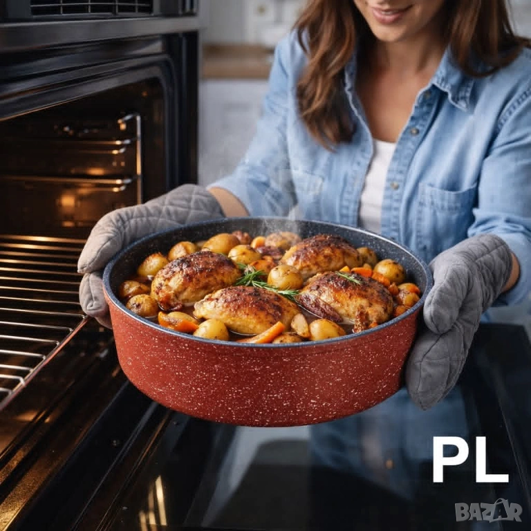 Подходяща е за всички видове котлони, включително индукционни, както и за използване във фурна.