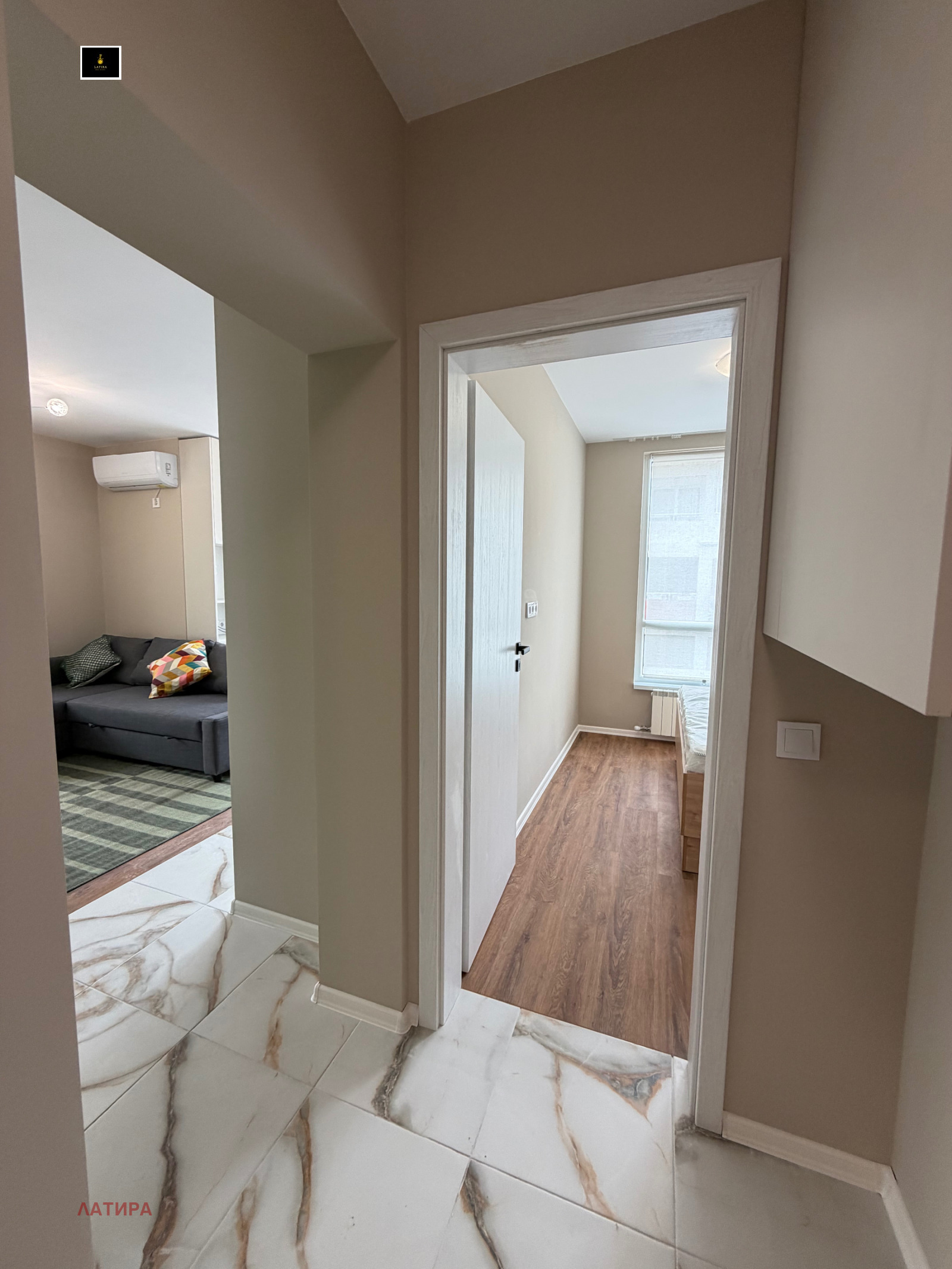 Апартаментът е изцяло с поставени климатици!