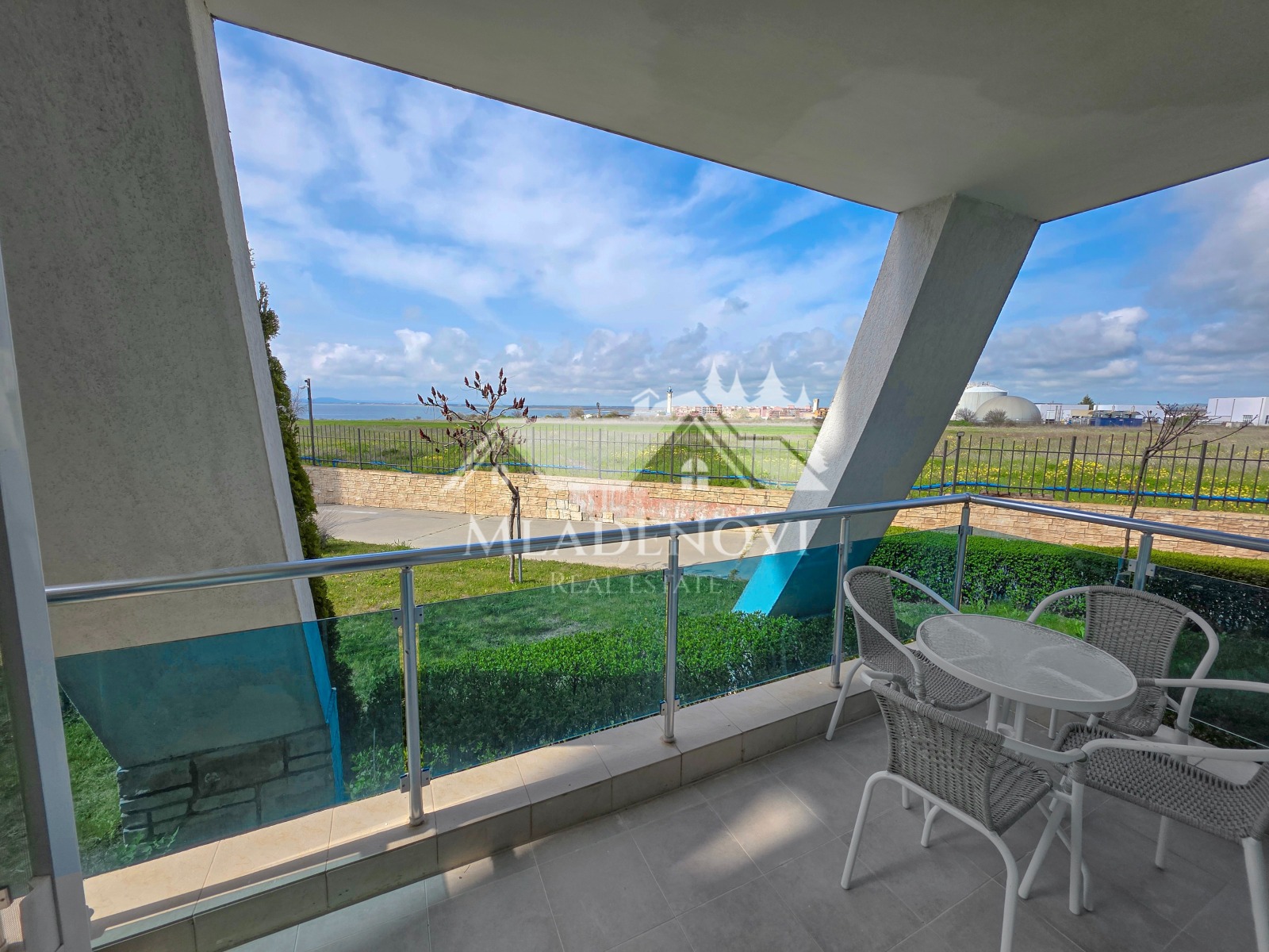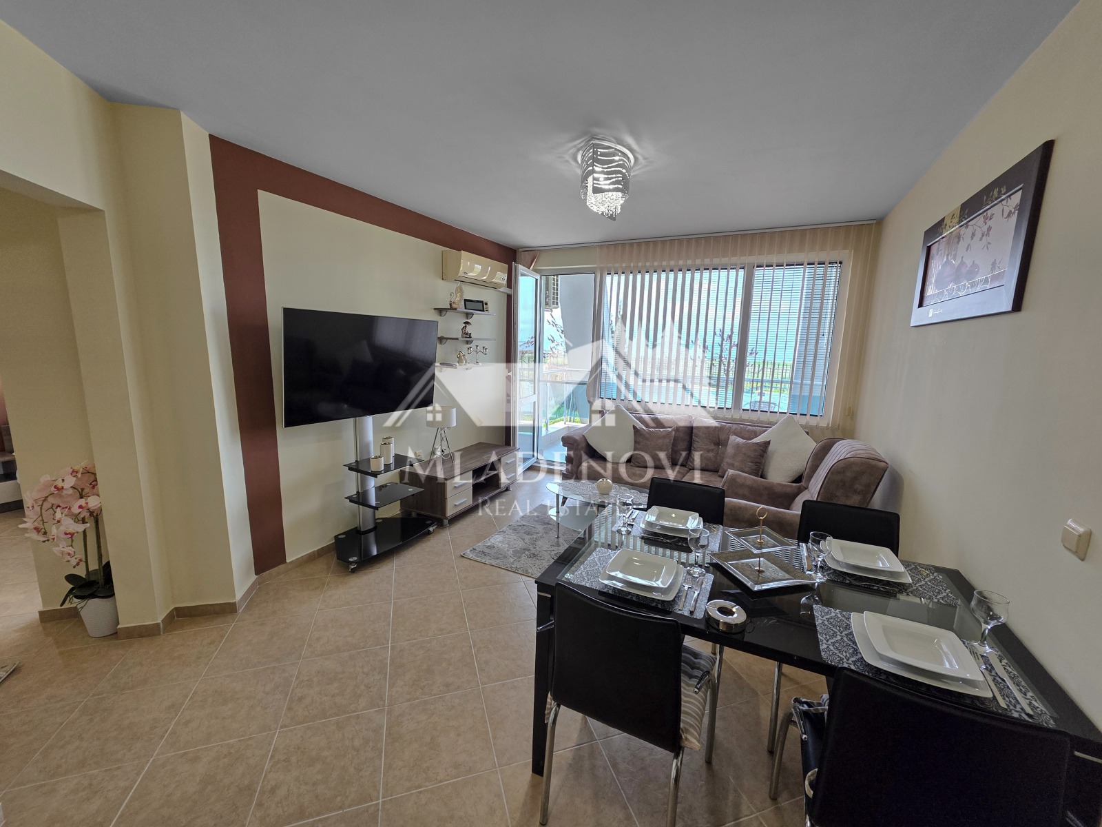 Имаме удоволствието да Ви предложим за продажба обзаведен с вкус двустаен апартамент с прекрасна МОРСКА ГЛЕДКА, в комплекс от затворен тип в с. Равда. Жилището се намира на ПЪРВА ЛИНИЯ до плажната ивица и в същото време, на тихо и спокойно място, с лесен достъп до плажа. За своите гостите и собственици предлага редица удобства като; два басейна, детска площадка, ресторант, рецепция, фитнес, спа зона, библиотека, видеонаблюдение и паркинг. Комплексът е целогодишен. Самостоятелни партиди за ток и вода. Таксата поддръжка е 10.50 Евро на кв.м. с ДДС годишно. Апартаментът е с функционално разпределение и се състои от всекидневна с голям и светъл кухненски кът, тераса, от която се разкрива морска панорамна гледка и зеленина, самостоятелна спалня, с още една по-малка тераса също с красива гледка, баня с тоалетна и коридор. Жилището е напълно обзаведено и оборудвано, в чудесно общо състояние. Изключително светло и слънчево. Подходящо за целогодишно ползване.