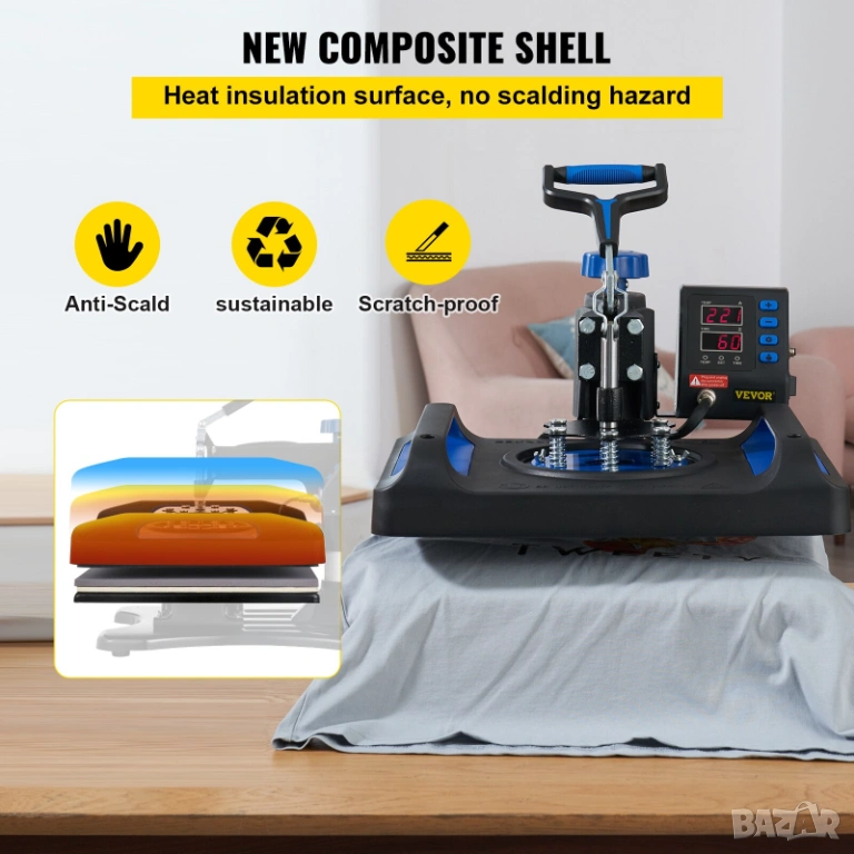 Пресата се различава значително от евтините китайски аналози, като предлага равномерна температура по целия плот , качествена двуслойна подложка и адекватен термостат.