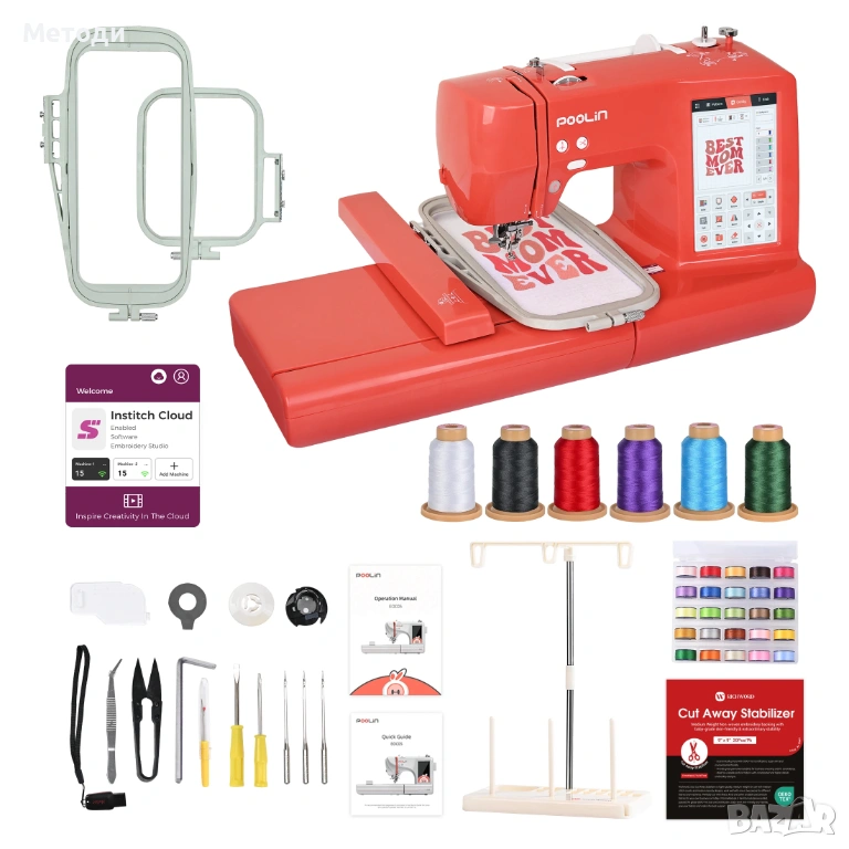 Машината е модерна и удобна за използване бродировъчна машина, подходяща за хоби, домашно творчество и малки бизнес проекти. Тя позволява лесно персонализиране на дрехи, аксесоари и различни текстилни изделия с високо качество и прецизни детайли.