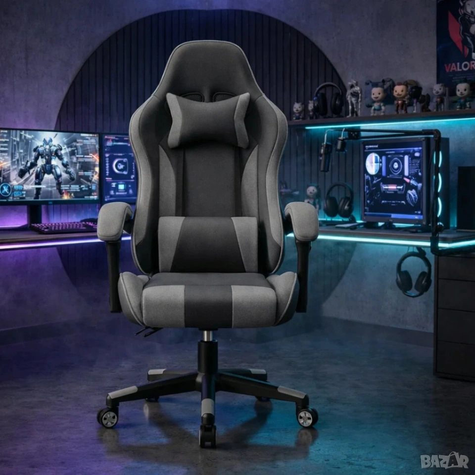 Ергономичен офис и геймърски сив стол – Максимален комфорт за гърба и врата, регулируем