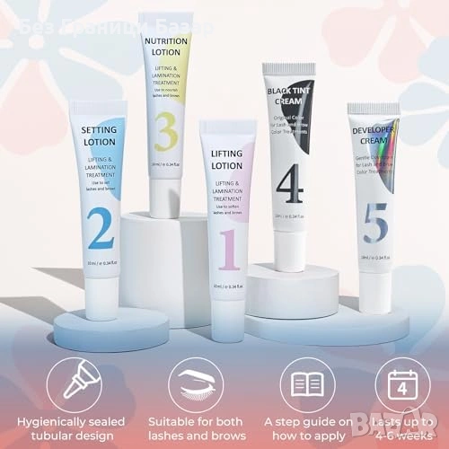 Комплект за повдигане и оцветяване на мигли и ламиниране на вежди