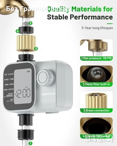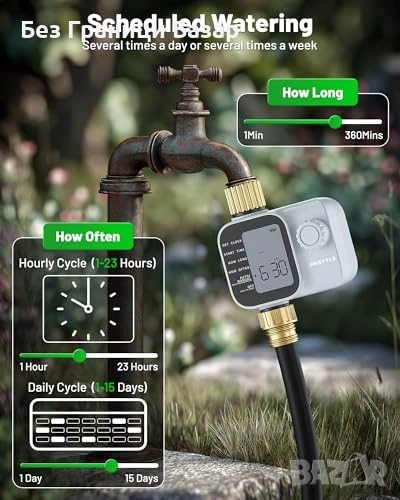 Автоматичен таймер за поливане за маркуч, тревни площи и градински растения