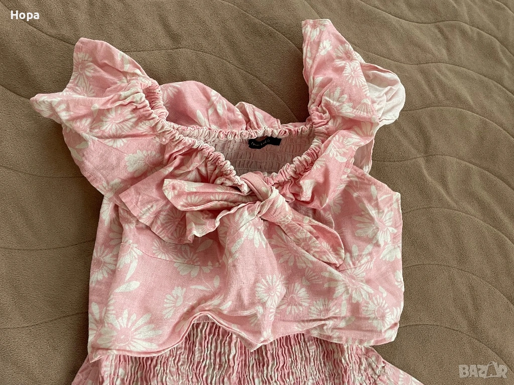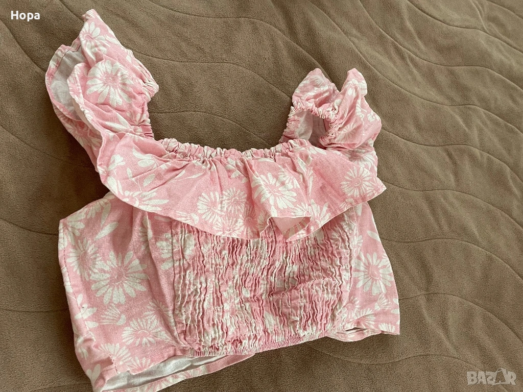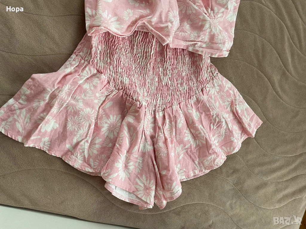Къси панталонки с висока талия и къса тениска в бебешко розово!