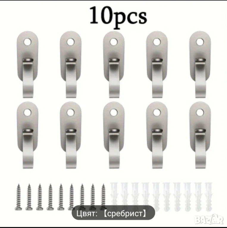 10 бр.Неръждаеми Куки за стенен Монтаж