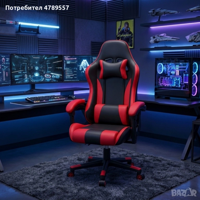 Ергономичен офис и геймърски син, бял, червен, сив, черен и син стол – Максимален комфорт за гърба и → Обява 54207378
