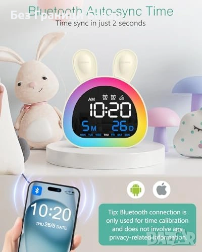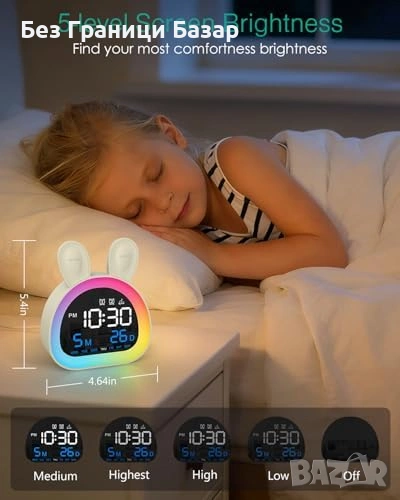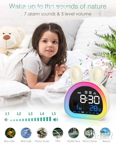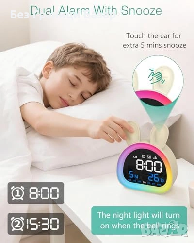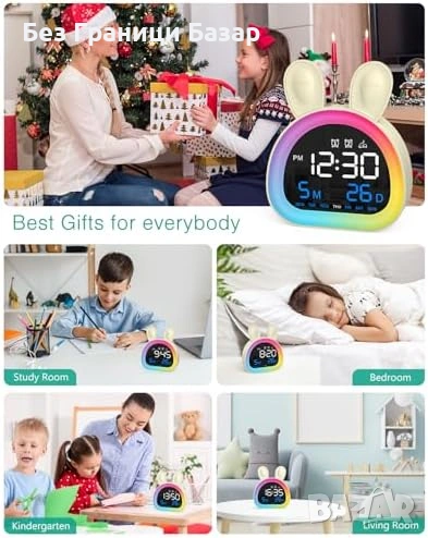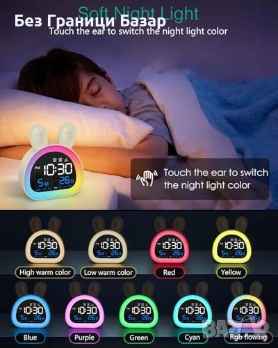 Нов Детски дигитален будилник с 2 аларми RGB светлина зайче лампа стая дете