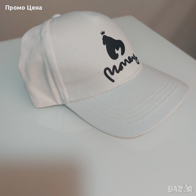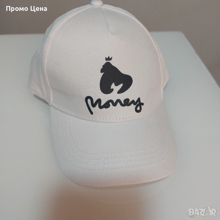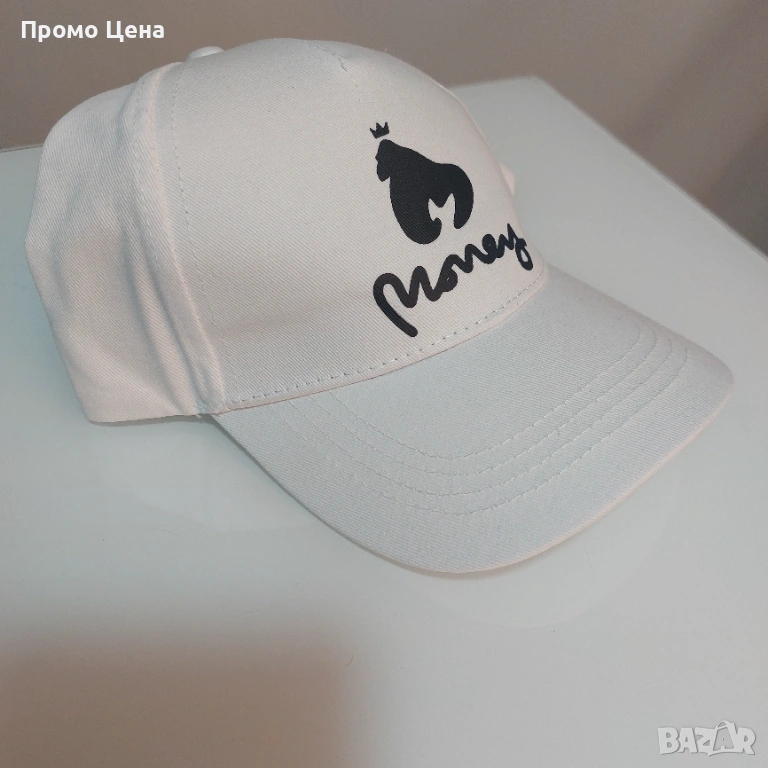 Стилна Бяла Шапка ”Money Gorilla Crown” - Уникален Графичен Дизайн → Обява 54207420